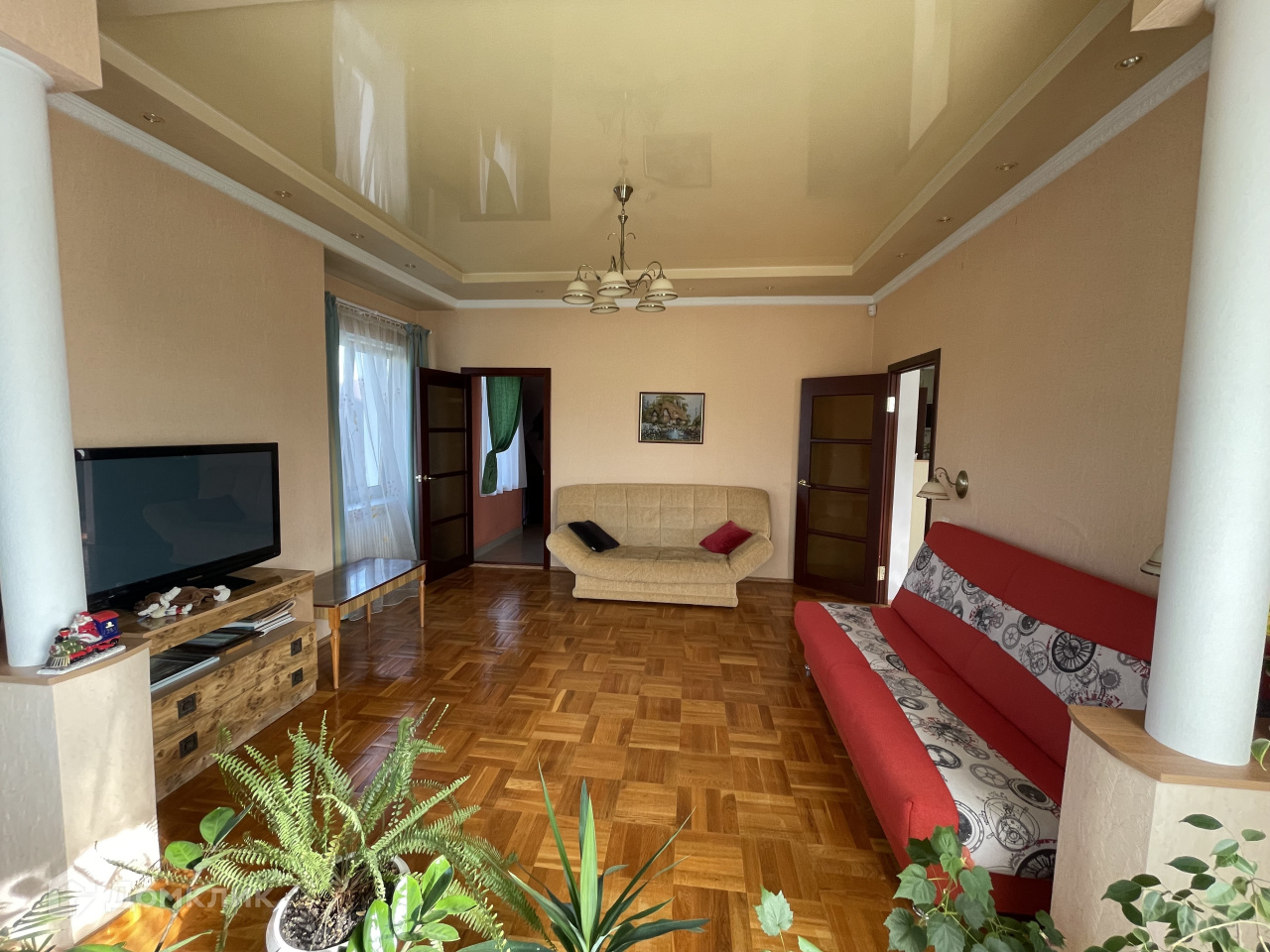 В Доме 2 наземных этажа и один цокольный. На первом этаже расположены прихожая, санузел, кладовая, кухня-столовая 17кв.м, гостиная, жилая комната. На втором этаже расположены три жилые комнаты и санузел. В цокольном этаже: тех помещения кладовая, сауна, большая ванная комната с окном. Практически вся мебель в доме остаётся новым владельцам.
