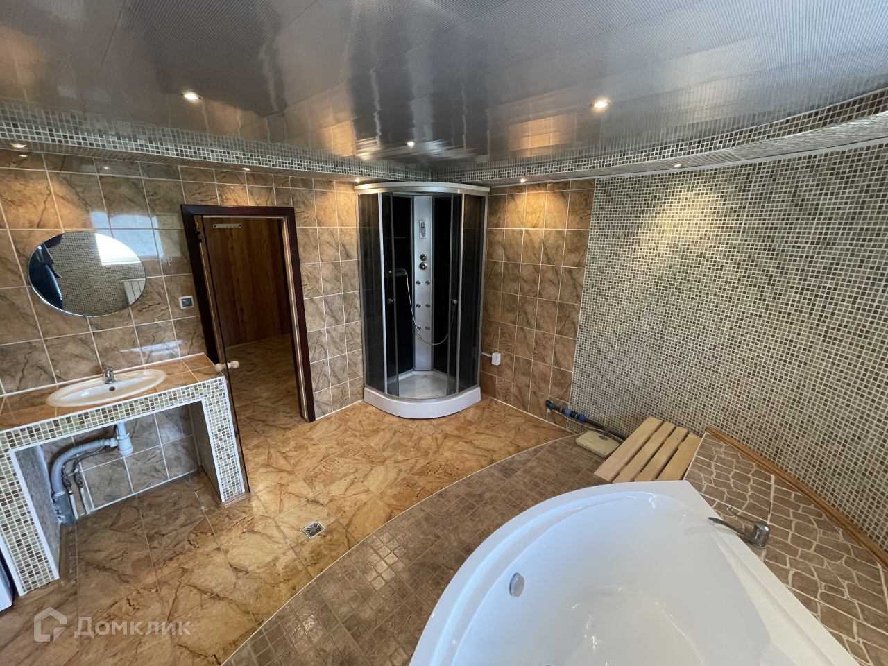 Участок 14,4 соток идеально распланирован. Двор перед домом: два парковочных места, парковая часть, капитальный гараж, большая беседка, в которой вы будете собирать любимых людей и угощать их приготовленными в русской печи вкусностями. За домом расположены баня, сад, огромная лужайка. На участок есть въезд с двух противоположных сторон.
