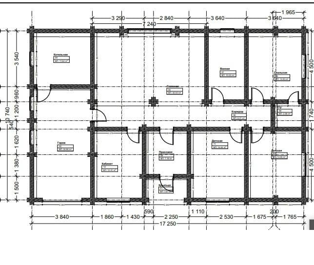 Дом разделен на жилую и общую зоны. В жилой зоне расположены 3 спальни (1 мастер-спальня). В общей зоне расположен большой зал (кухня-гостиная 42 м2) с выходом на террасу, кабинет, и выход в гараж/зону отдыха. Залит фундамент под камин. По проекту в доме 2 санузла: общий площадью 10 м2 и второй в спальне.