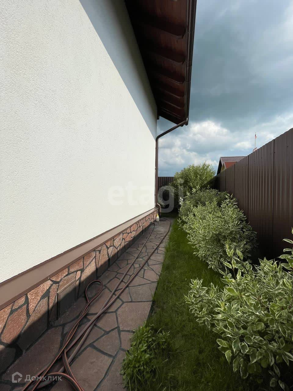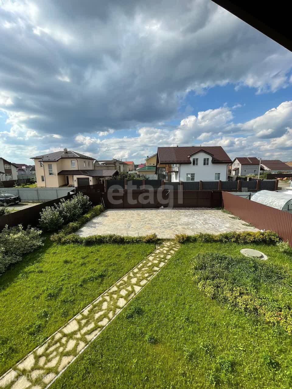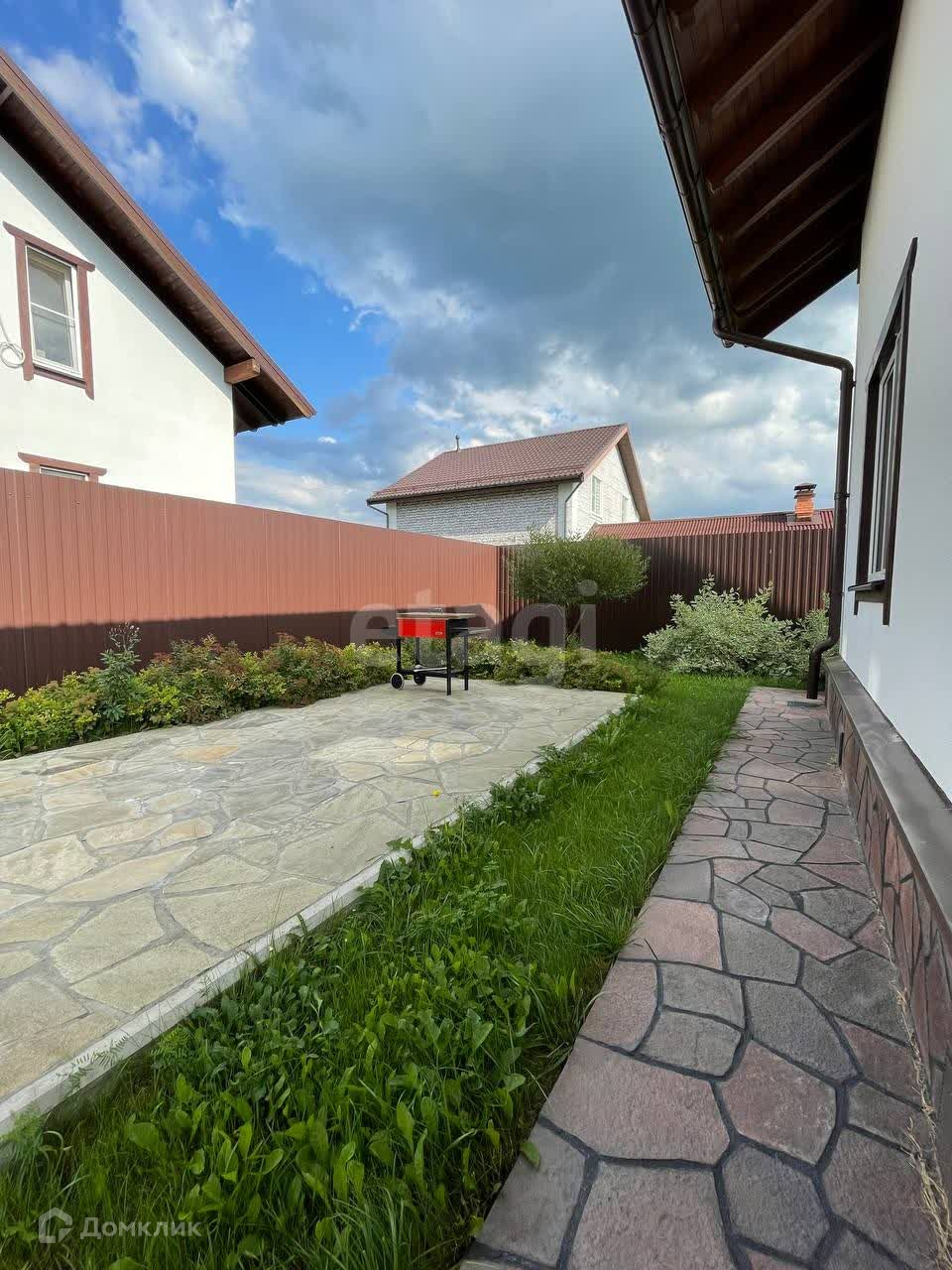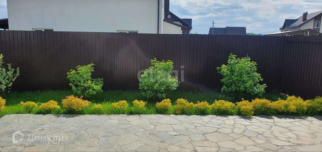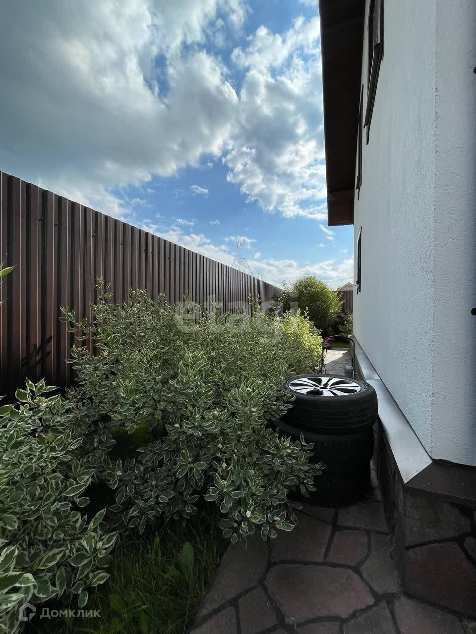 Дом обустроен на участке площадью 5 соток, огорожен забором с автоматическими воротами. На участке установлены снегозадержатели, дренажная система, и проведен ландшафтный дизайн.