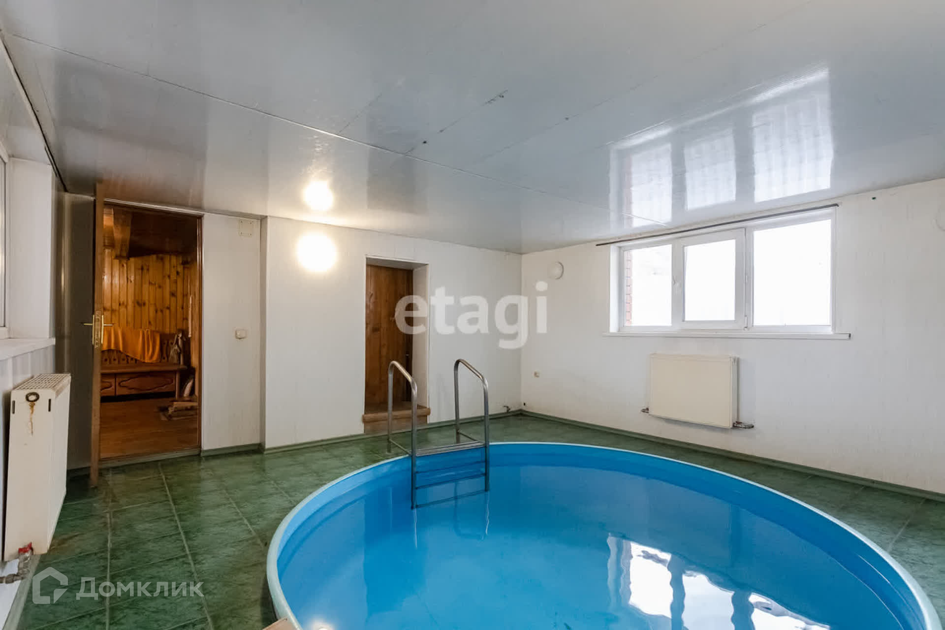 Отдельный банный комплекс 60 м2, в нём имеется комната отдыха с бильярдом, бассейн с подогревом и фильтрацией, парная, проведено отопление и водопровод. С обратной стороны есть пристрой для хранения 6 м2. Гараж в цокольном этаже на 2 автомобиля, проведено отопление и электричество, там же есть помещение для хранения (20 м2), овощная яма.