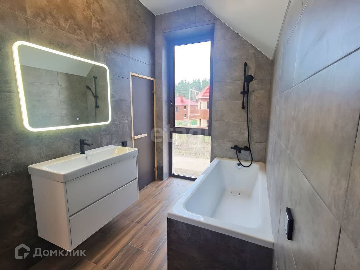 Коротко про конструктив дома: Фундамент свайно-ростверковый. Стены Твинблок 300мм + утеплитель фасада минеральная вата 100 мм. Фасад выкрашен силиконовый краской с переходами Межэтажные перекрытия ЖБ плиты. Утепление кровли 300 мм. На крыше фальцевая кровля. Энергоэффективные окна с напылением Бронза и ламинацией внутри и снаружи. Тёплый водяной пол на двух этажах. Полная отделка санузлов с установкой всей сантехники, шкафов, тумб и раковин.