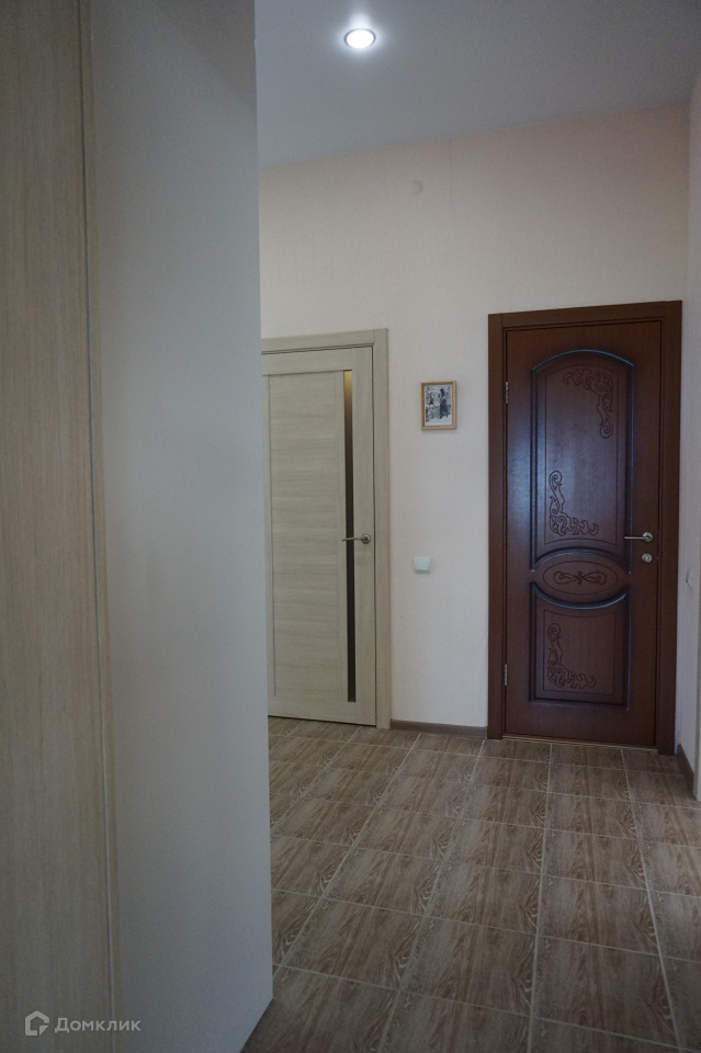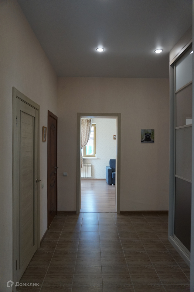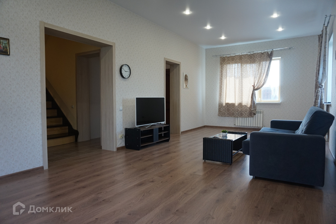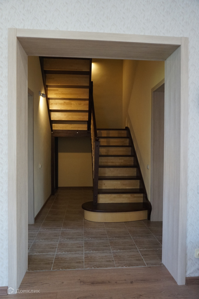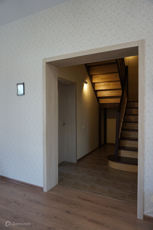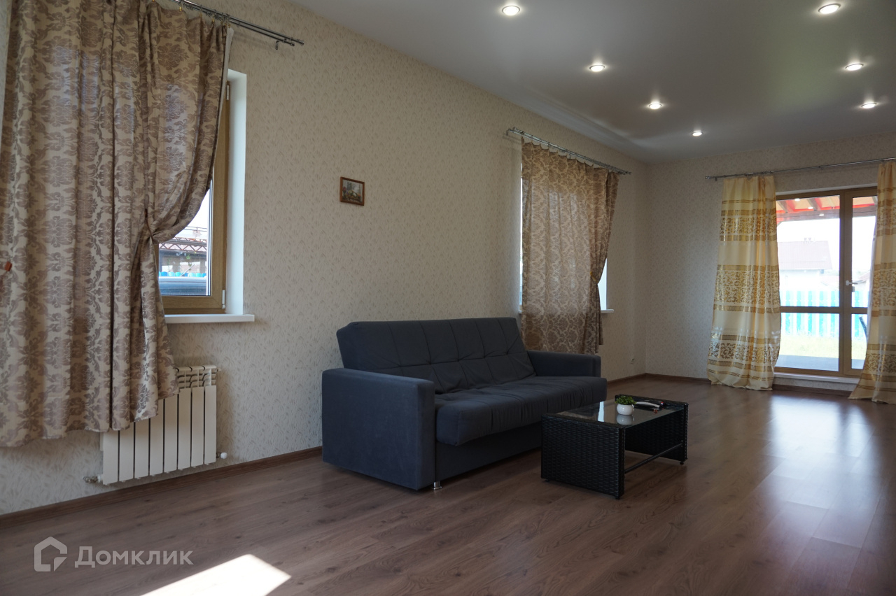 Внутренняя отделка произведена с использованием современных, качественных материалов: стены оклеены обоями (в т.ч. под покраску); па полу керамогранит и ламинат, на террасе постелена композитная "террасная доска"; в с/у и ванной комнате - кафель, установлена современная сантехника, во всех помещения первого этажа и в ванной комнате натяжные потолки с зонированным многоуровневым освещением, в детских и спальне сложные потолки выполнены гипсокартоном; во всех помещениях установлены качественные двери, проемы первого этажа отделаны в едином стиле.