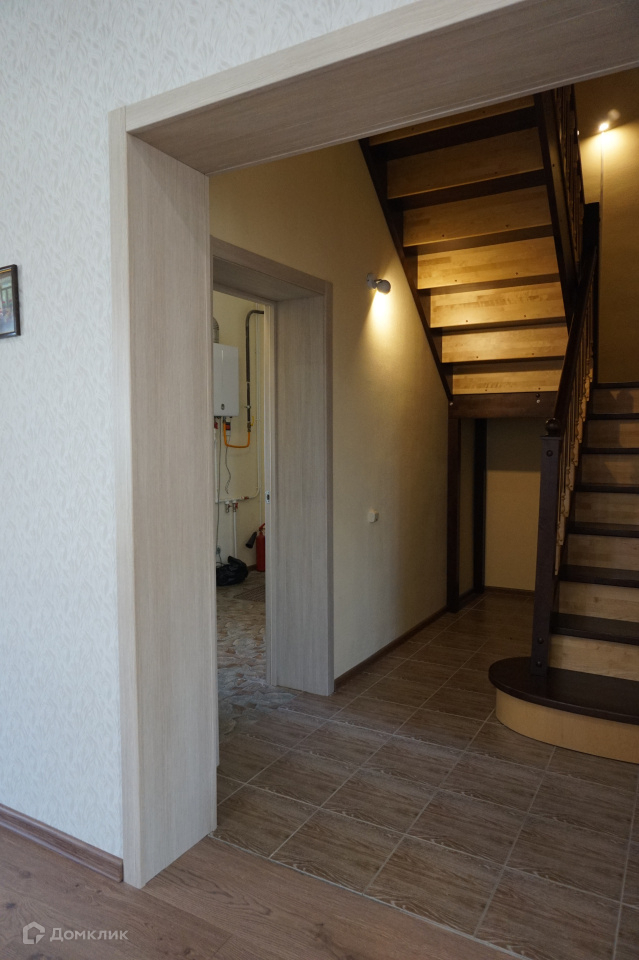 Первый этаж: холл с двумя просторными стационарными шкафами-купе фирмы Командор, гостевой санузел, основное помещение - гостиный зал площадью 36 кв.м. с выходом на крытую террасу 25 кв.м., кухня-столовая 25 кв.м, бойлерная с отдельным уличным входом 8 кв.м.