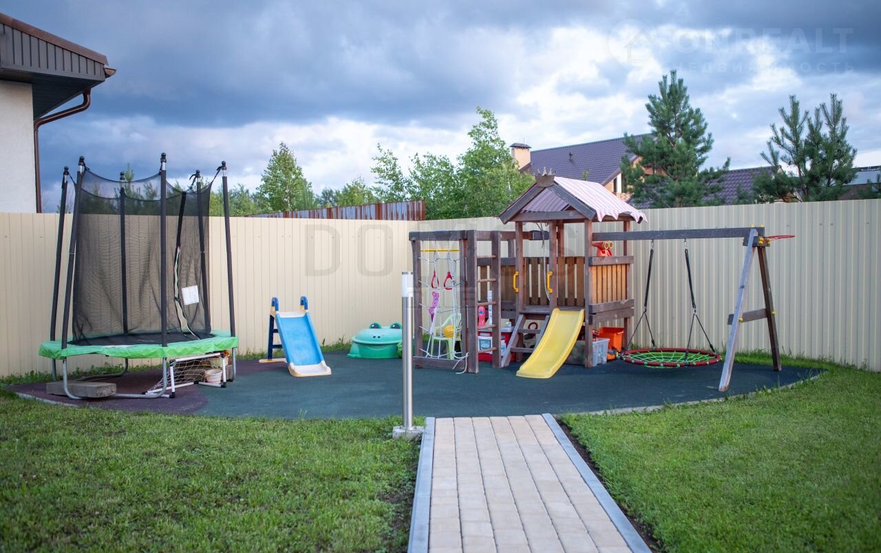 Выведена вместительная зона барбекю и детская площадка с прорезиненным основанием.