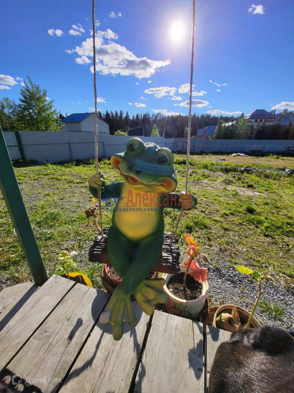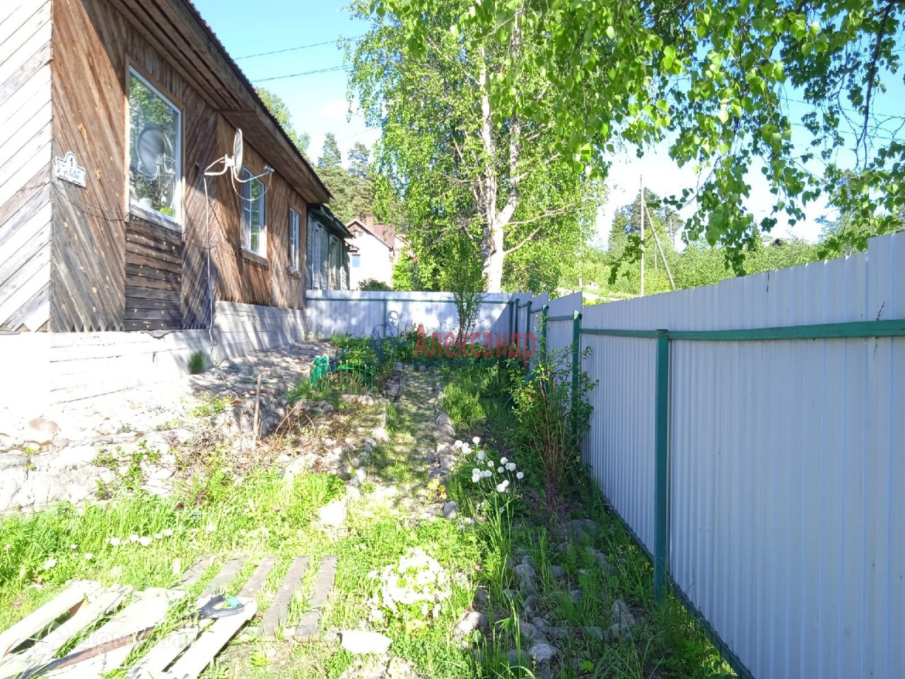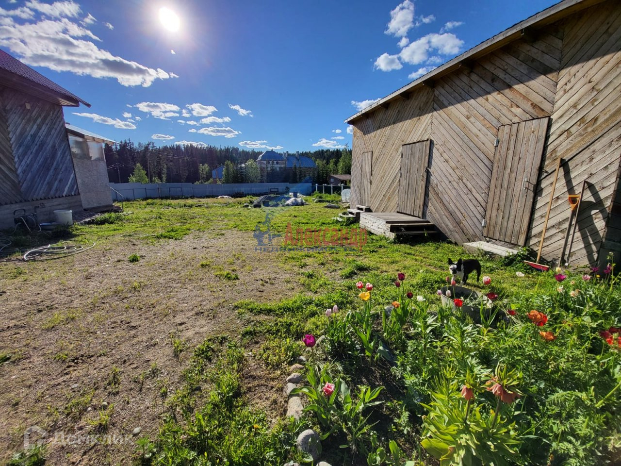 Участок регулярно выкашивается от травы,  солнечный, разбиты цветочные клумбы.