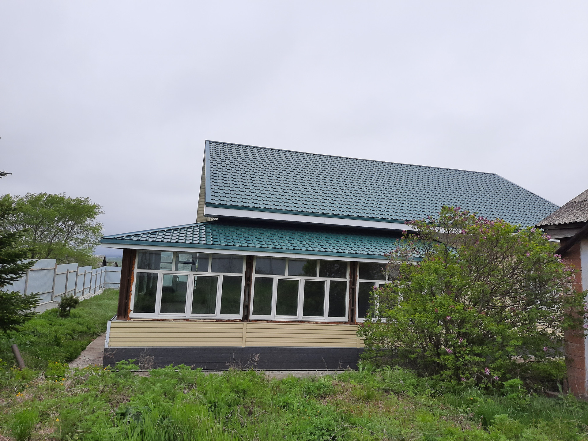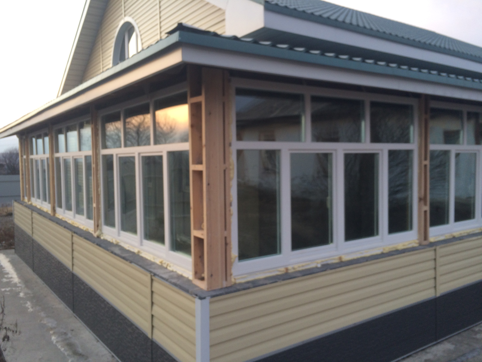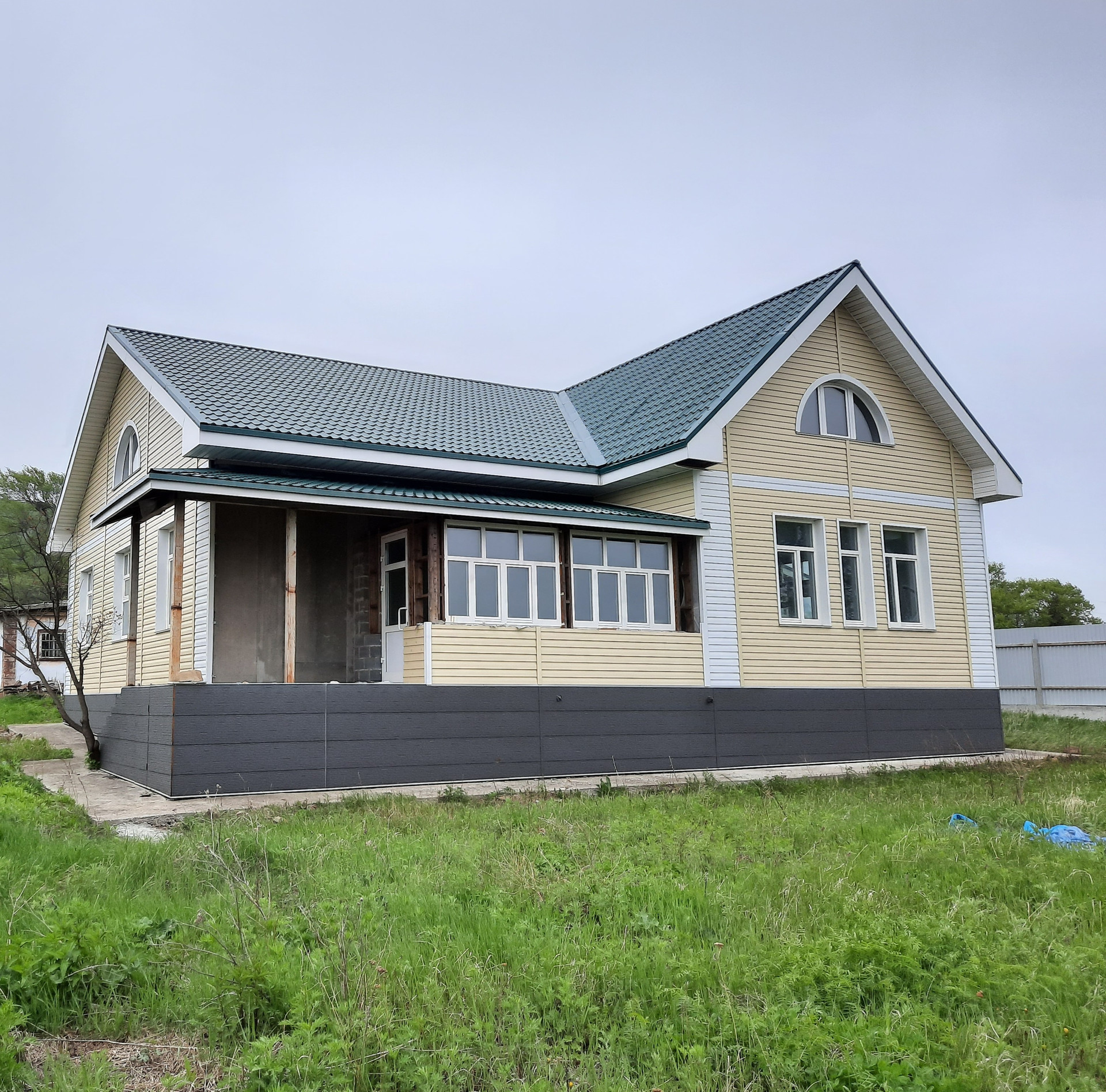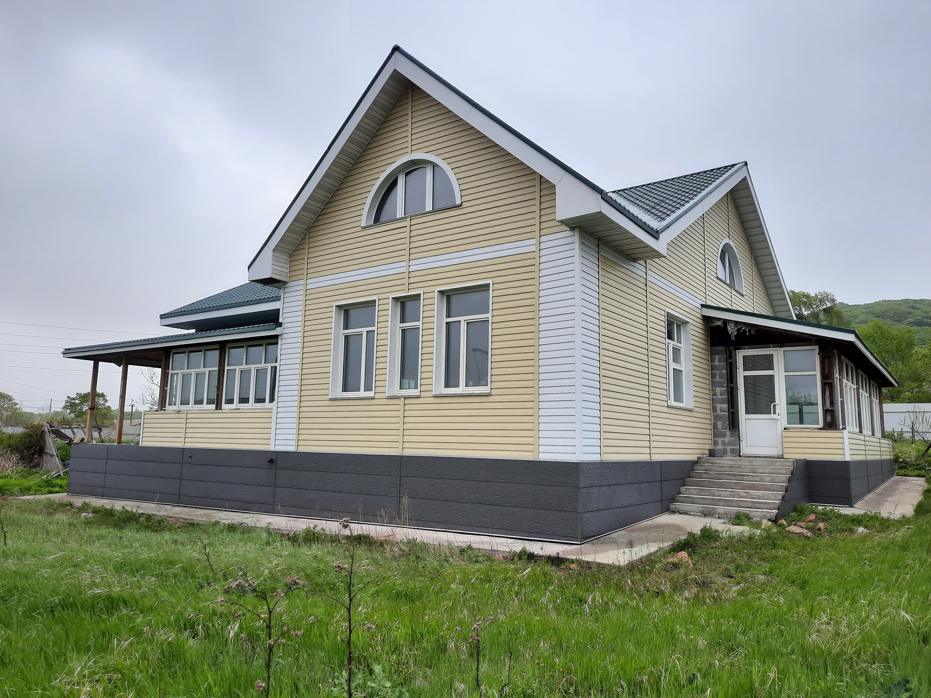 Дом построен по специальному проекту с использованием теплых, экологичных панелей. Фундамент комбинированный: ленточный с буронабивными сваями (ширина росверка 60 см, глубина свай 2,5м) + залитая монолитная плита по всей площади, прочный – простоит века. Площадь первого этажа 200 м2, площадь второго этажа 80м2, площадь крытой веранды 60м2. Дом полностью построен и отделан внешне: нижняя часть стен отделана панелями Unipan, верхняя - металлосайдинг, деревянные евроокна, железные двери. Внутренняя отделка не выполнена – есть поле для фантазии и для собственного планирования комнат. Под одной крышей с домом веранда, застекленная по всей длине. В доме забетонирован погреб глубиной в 2,5 метра, площадь погреба 40м2, дренаж.