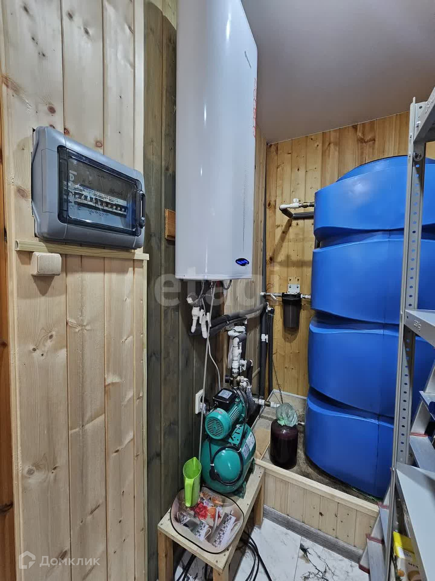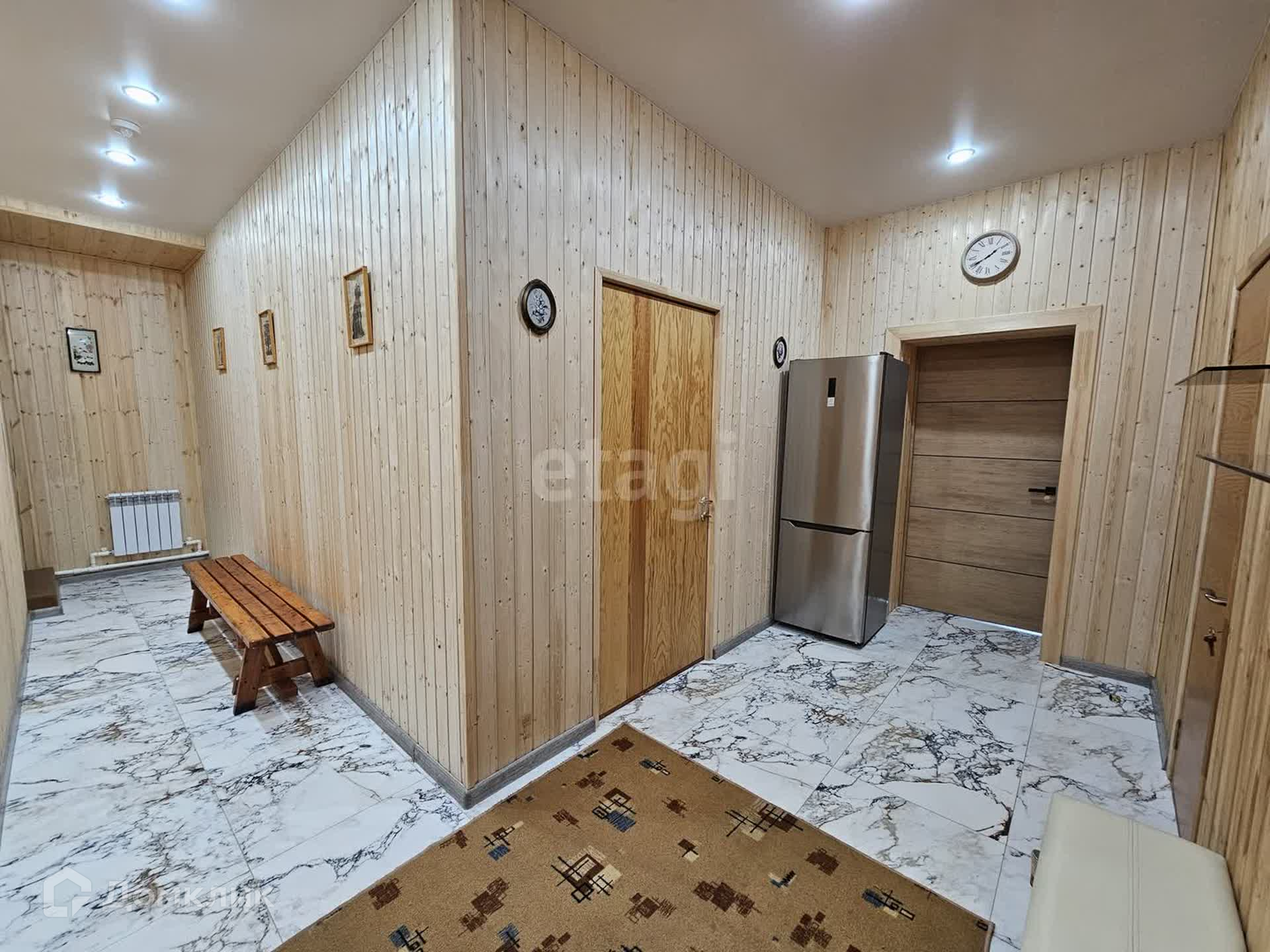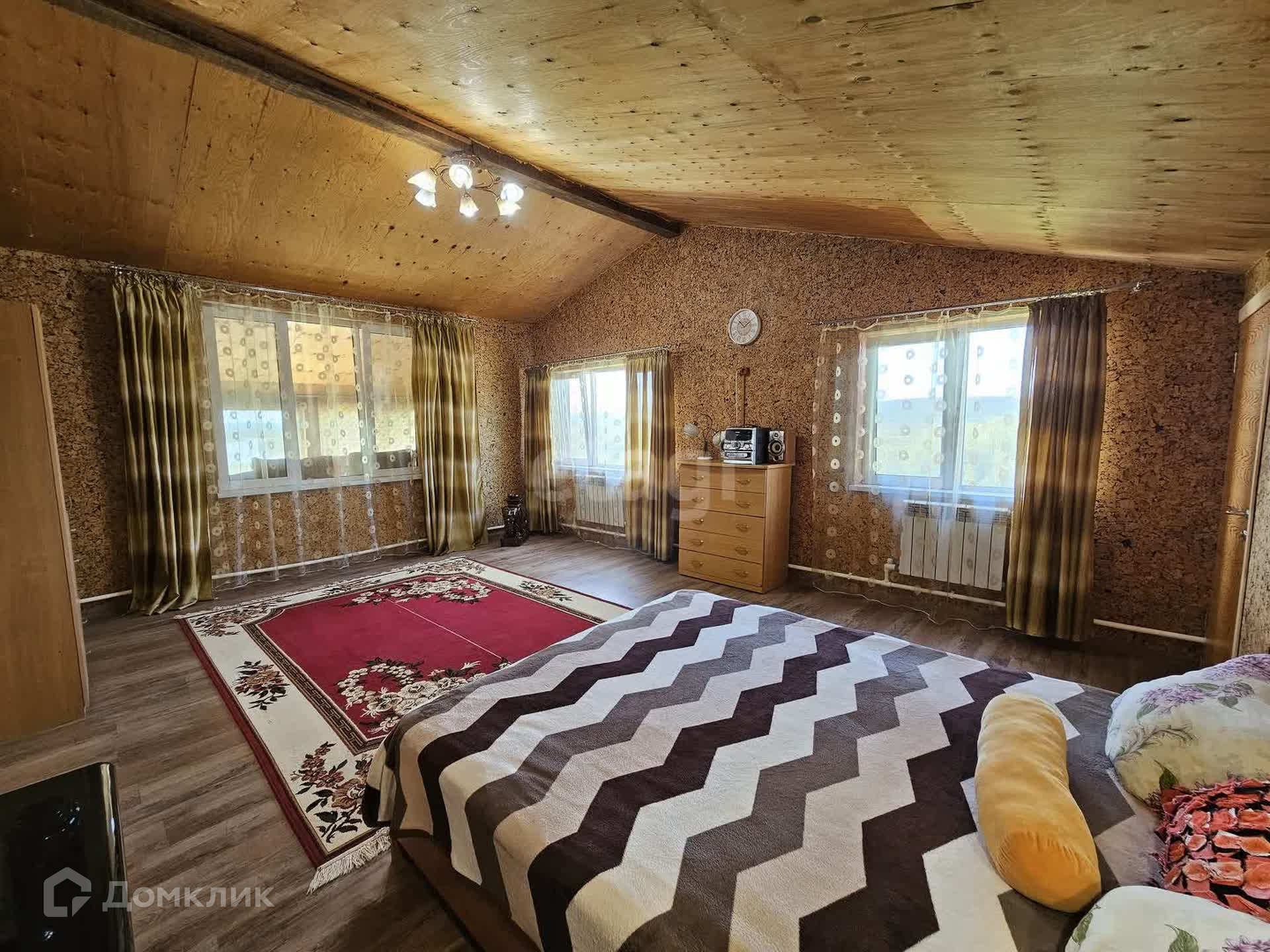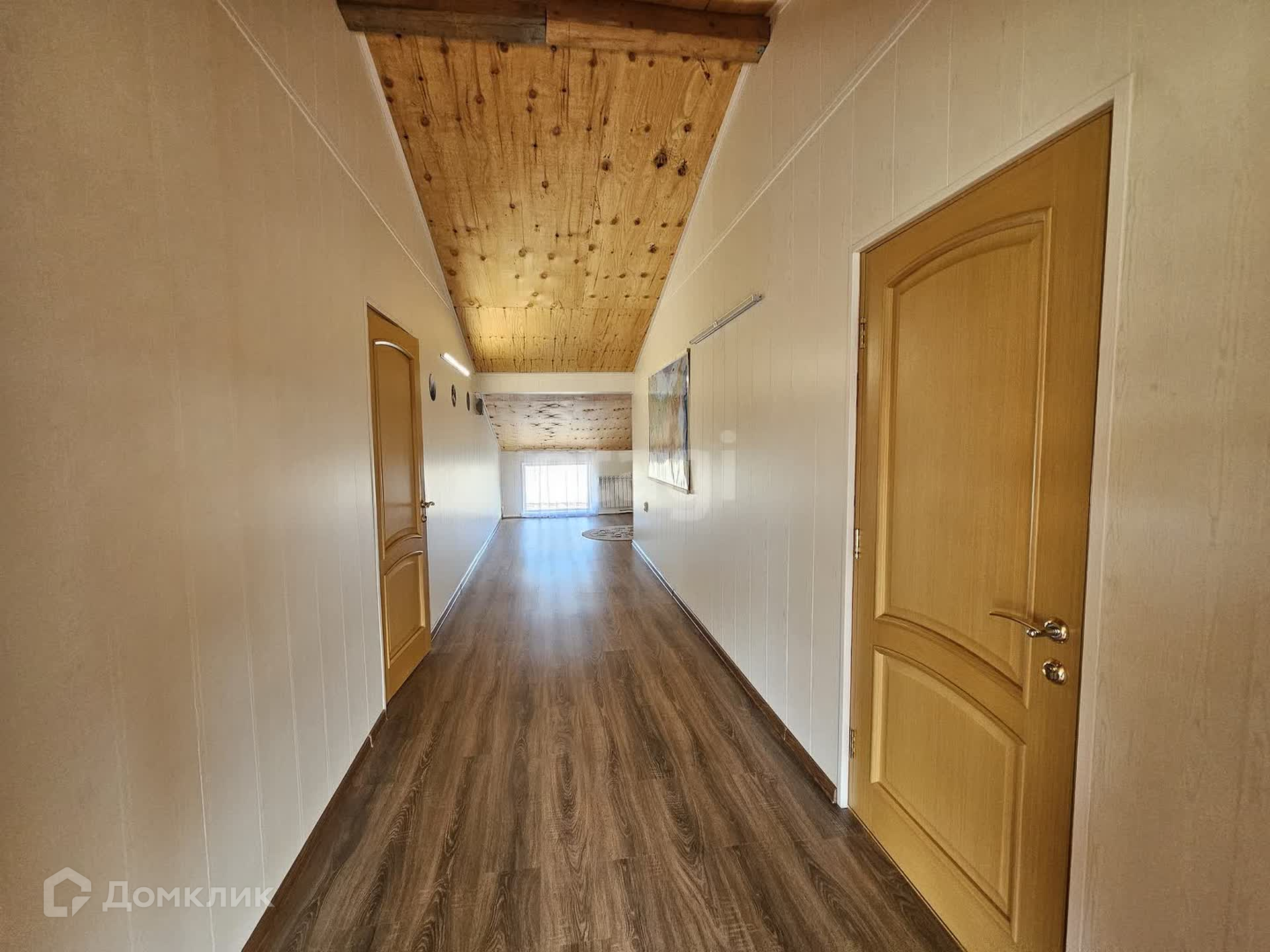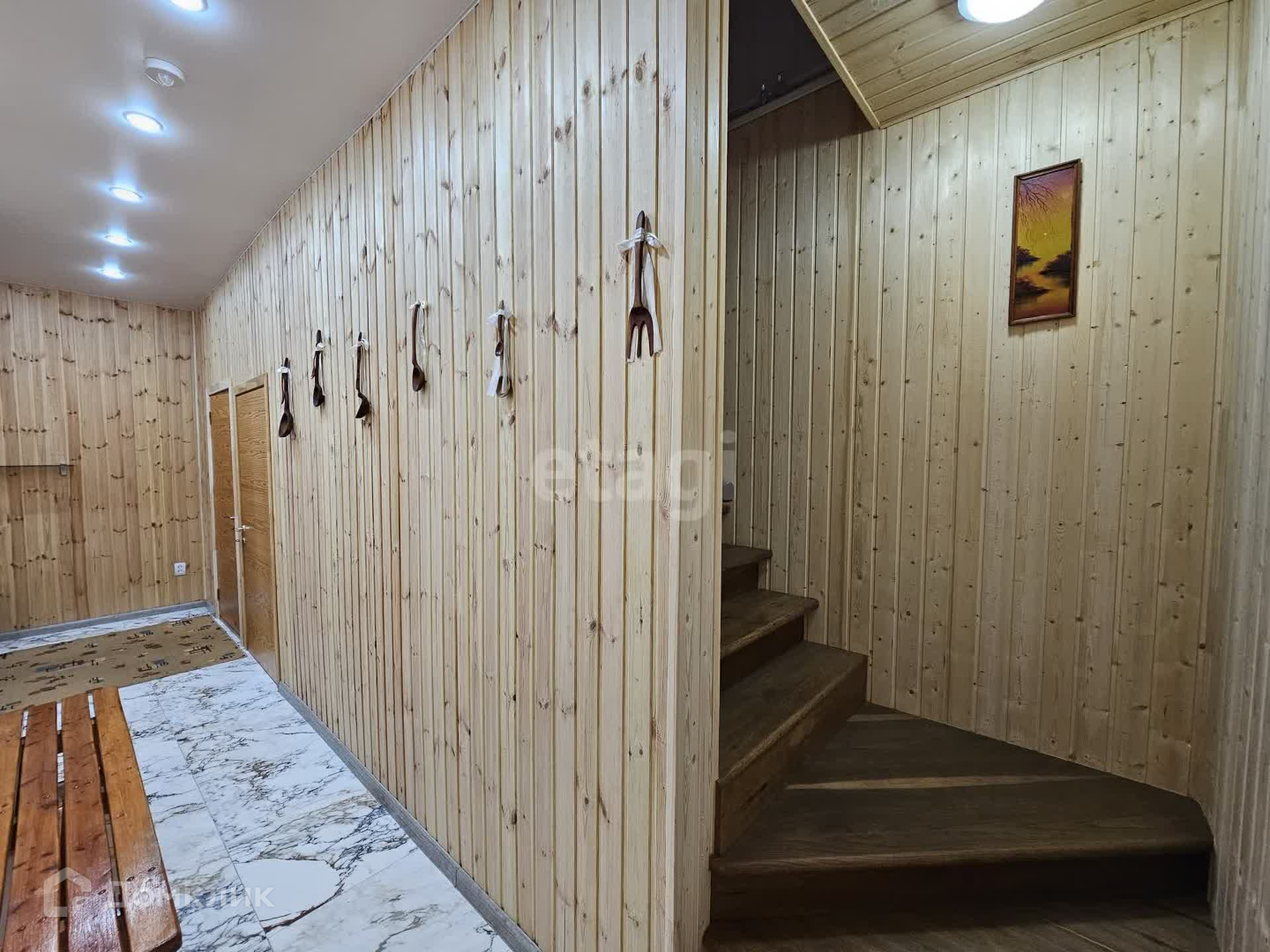 + 1 этаж - обои, вагонка, 2 этаж - блокхаус, пробка