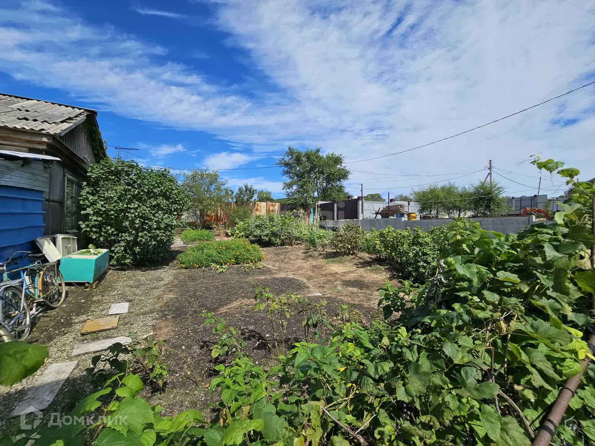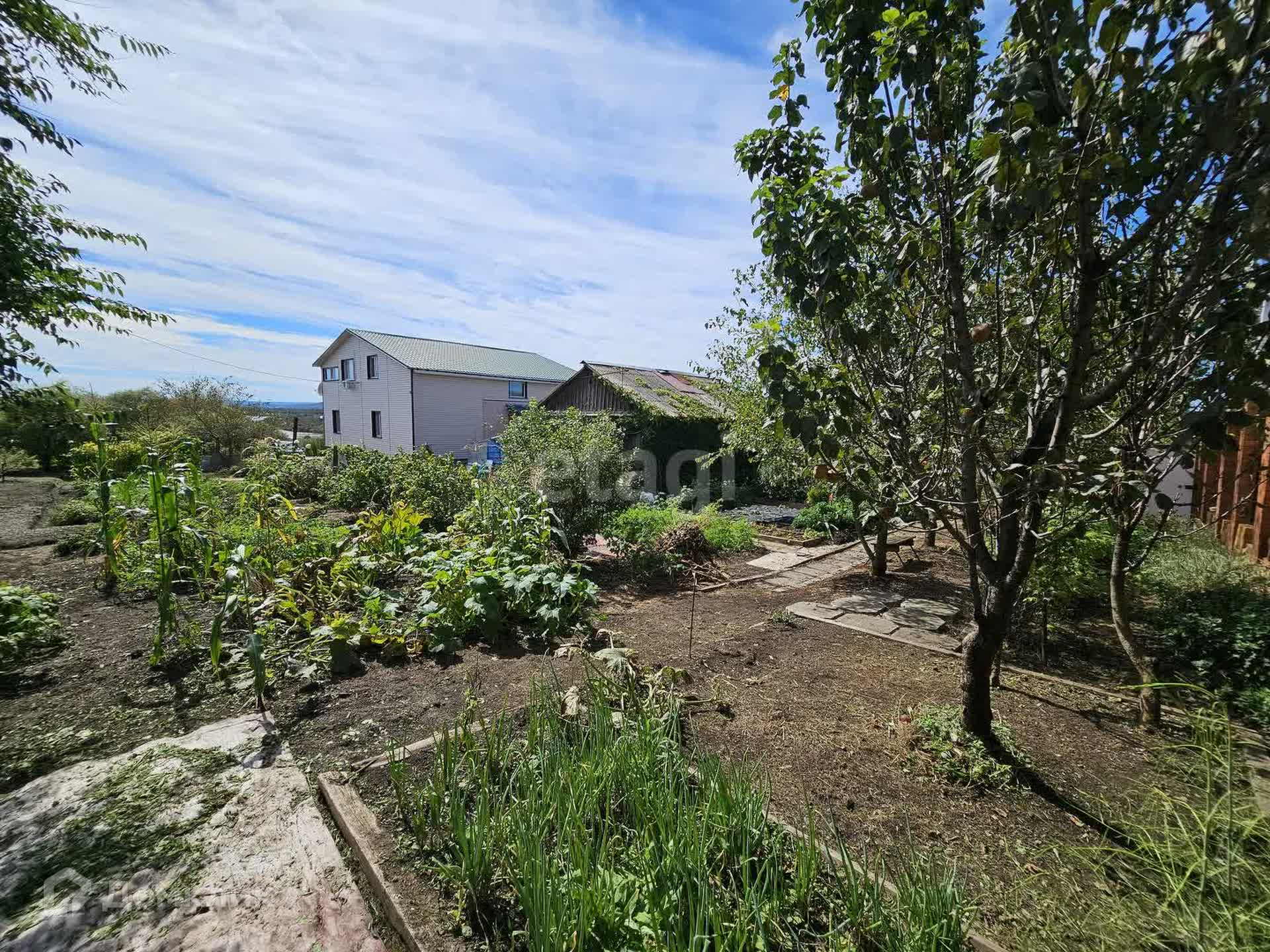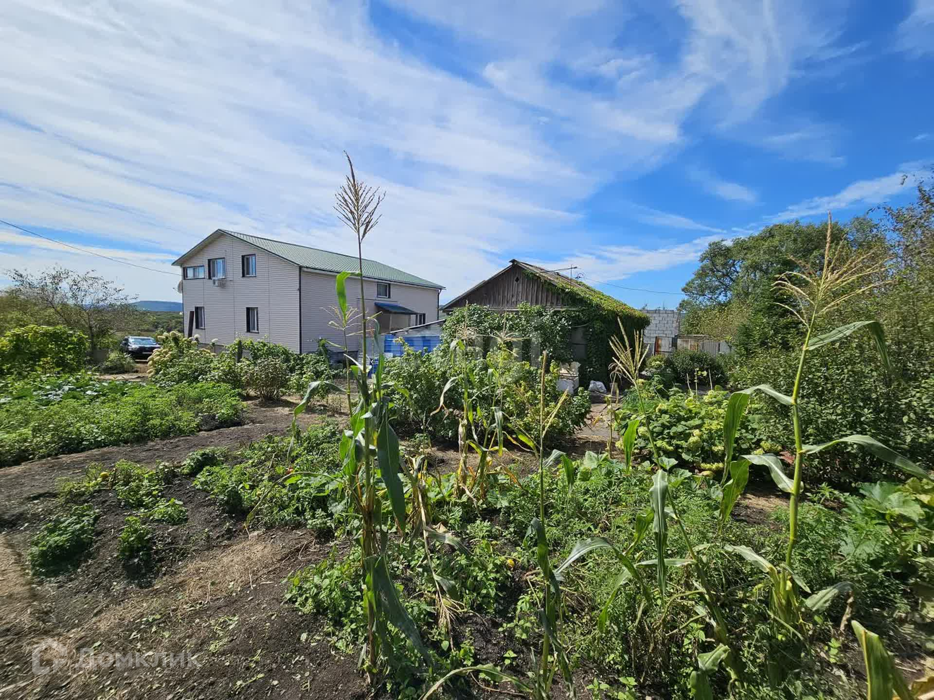 Участок облагорожен, есть место для своих посадок, огород, ухоженный сад. На участке растут виноград, яблоки, абрикос, груша, крыжовник, жимолость, клубника, малина, слива, смородина. Также на участке есть свой пруд с рыбками.