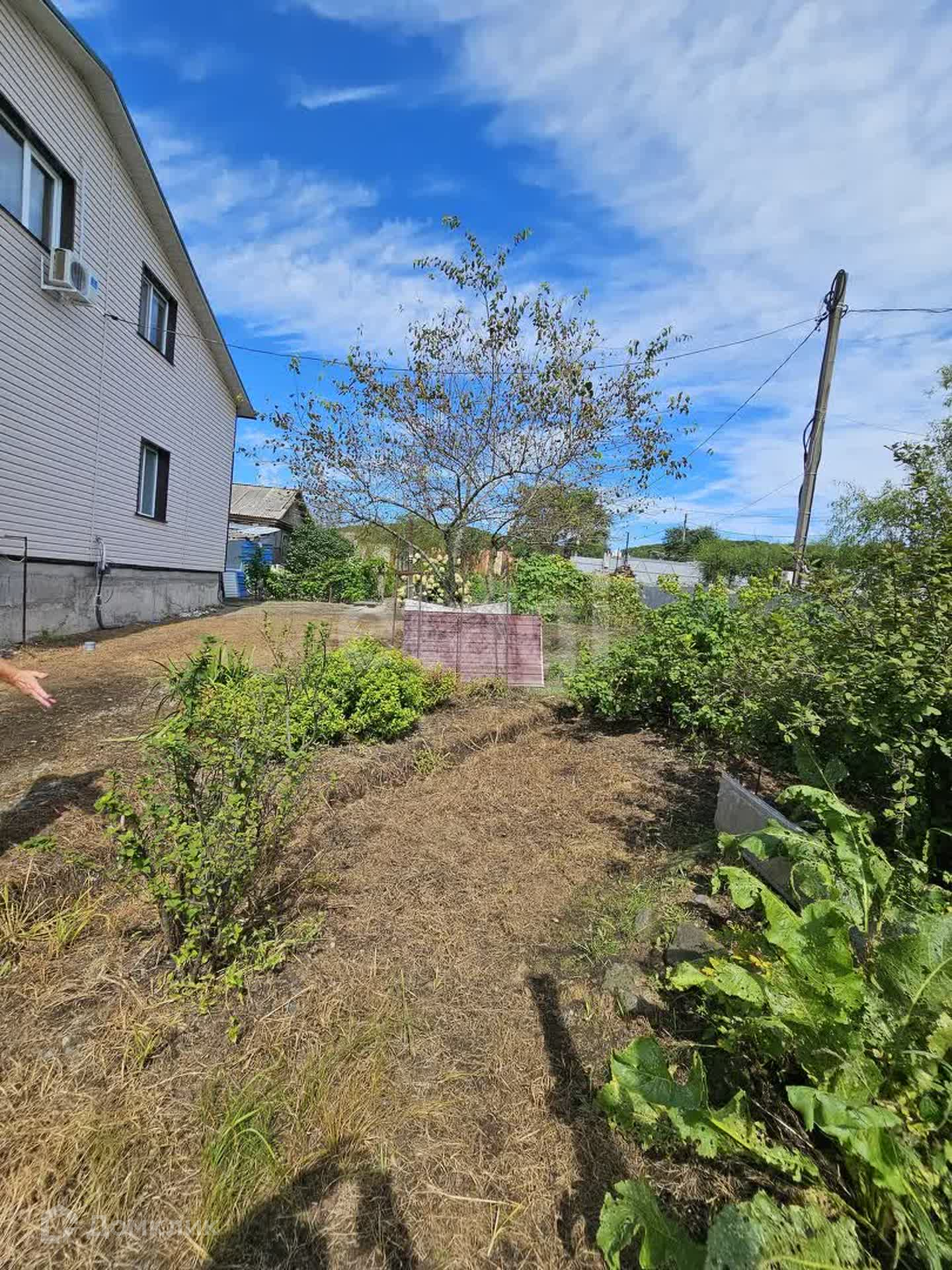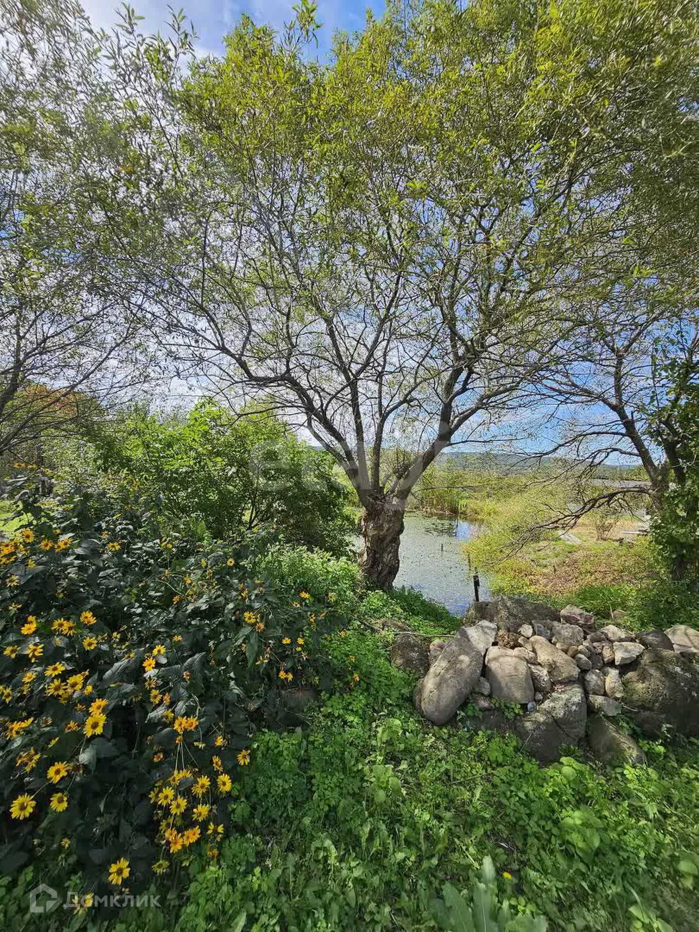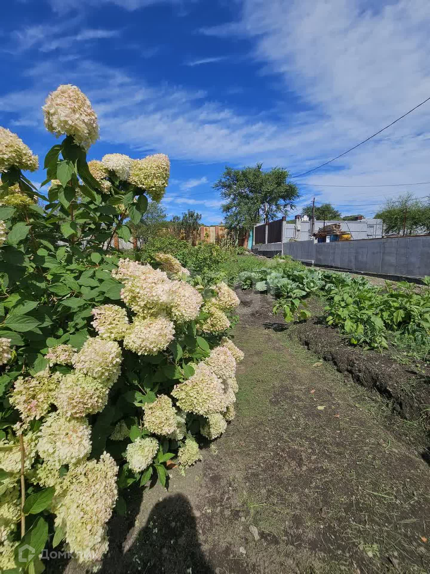 Участок облагорожен, есть место для своих посадок, огород, ухоженный сад. На участке растут виноград, яблоки, абрикос, груша, крыжовник, жимолость, клубника, малина, слива, смородина. Также на участке есть свой пруд с рыбками.