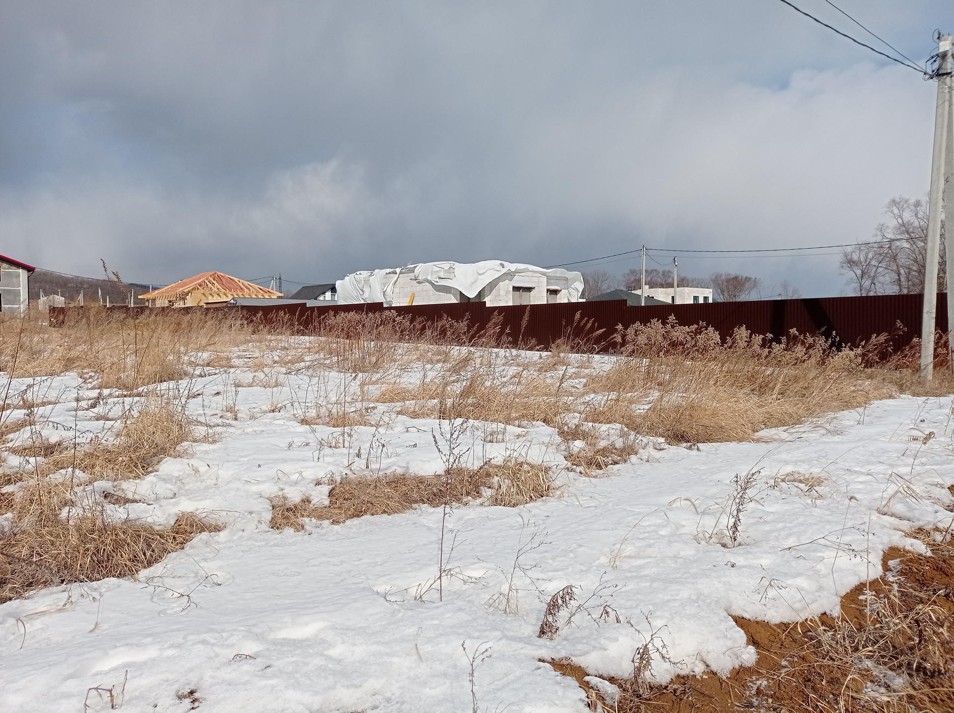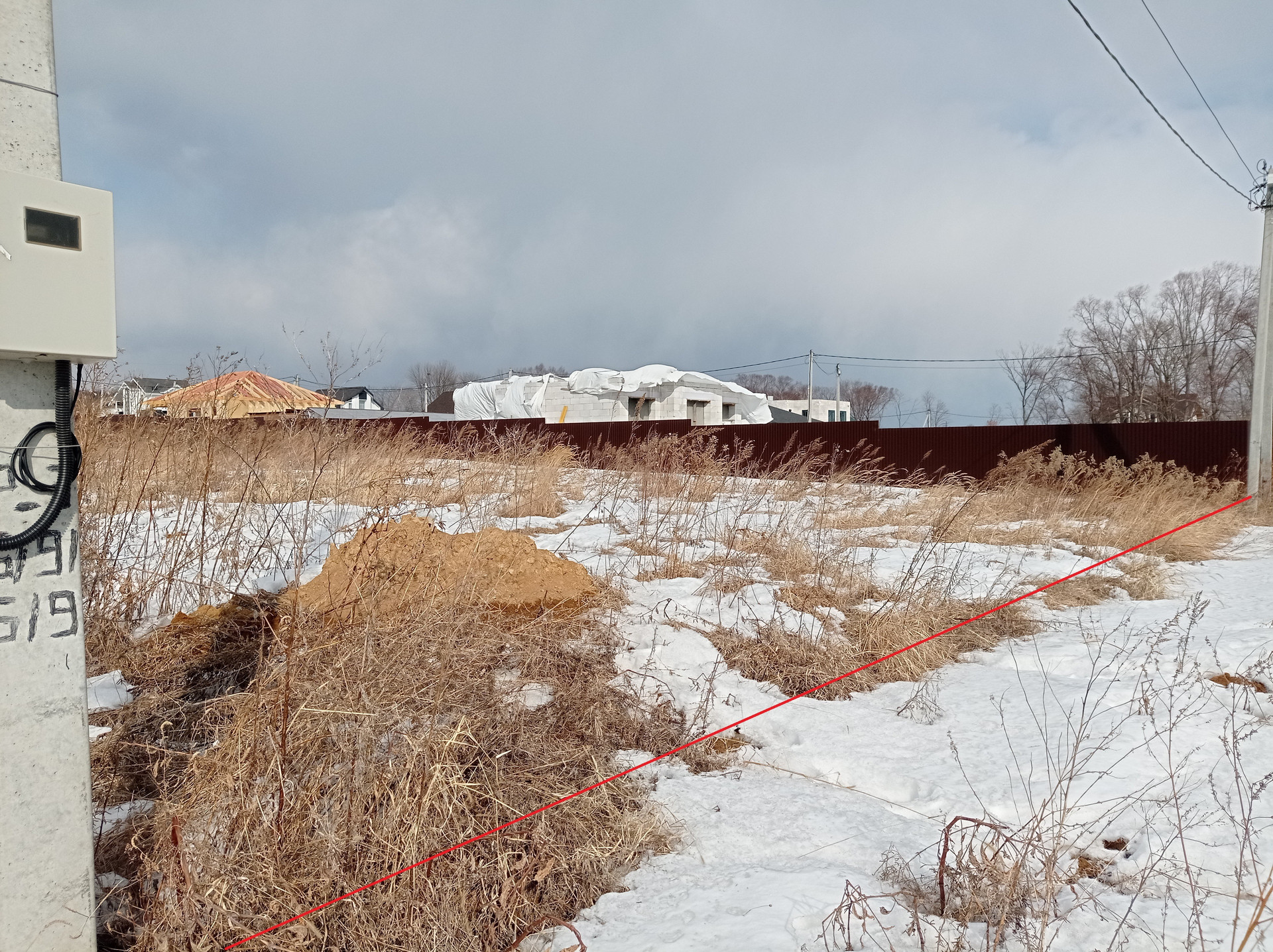 - С правой стороны установлен забор соседних участков