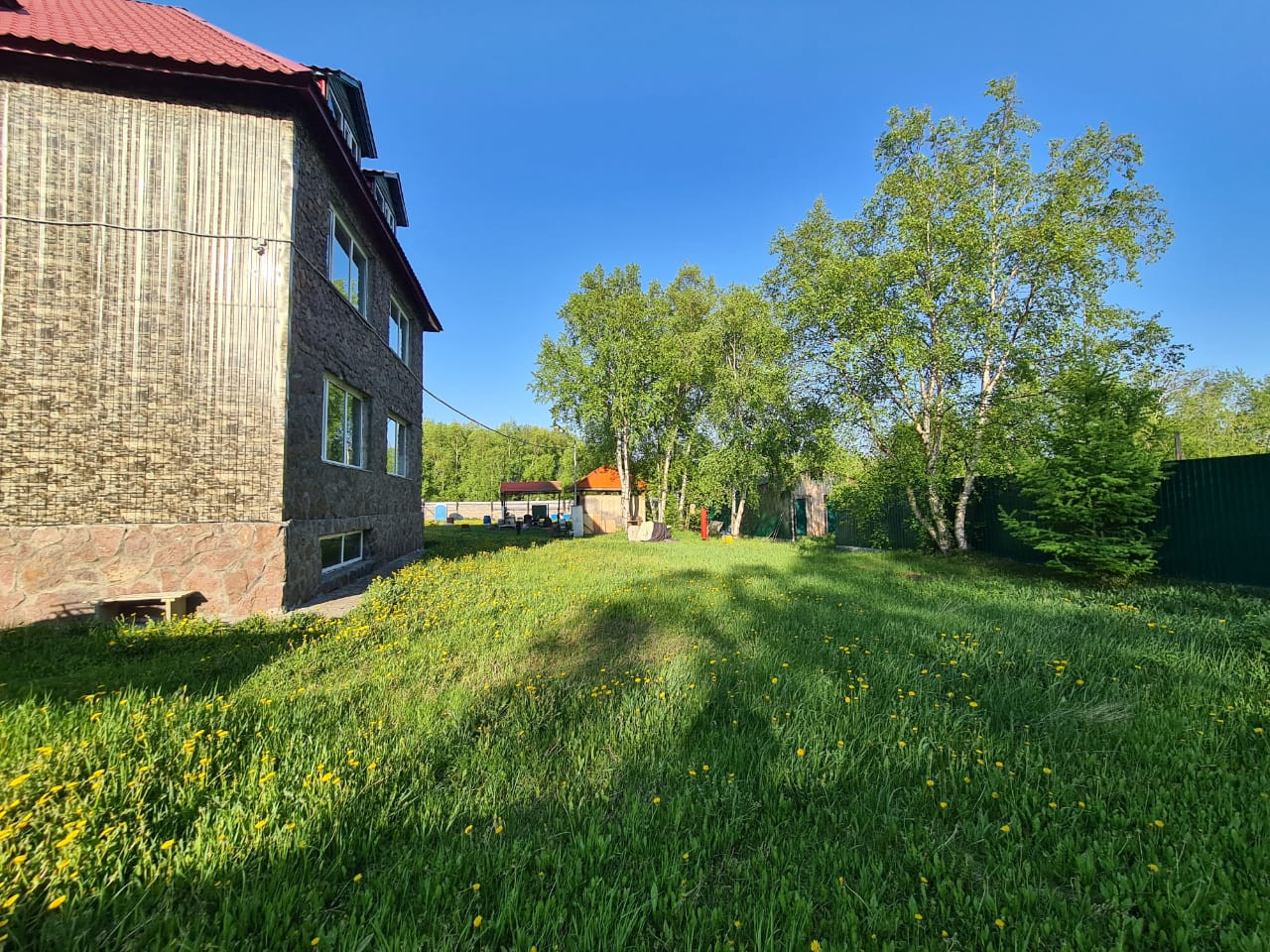 Интересный вариант под гостиницу или базу отдыха (на цокольном этаже залит бассейн и есть место для просторной сауны). Забор из профнастила, откатные ворота открываются с пульта.
