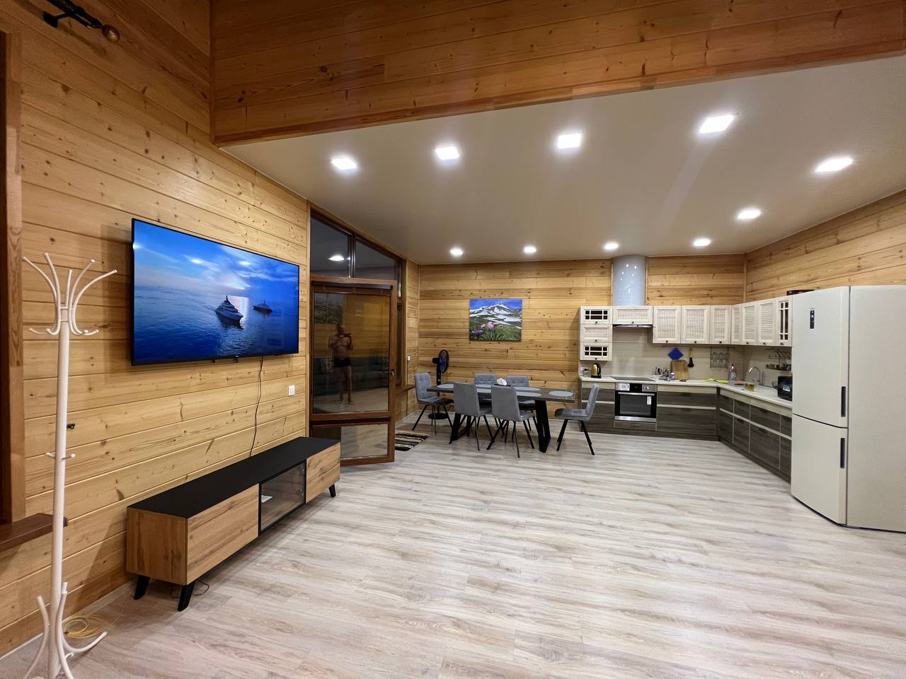 на втором этаже две комнаты с двуспальными кроватями в гостиной первого этажа большой диван способный вместить до 4 х человек есть доп. места (раскладушки отельные) 2000 за доп. место.