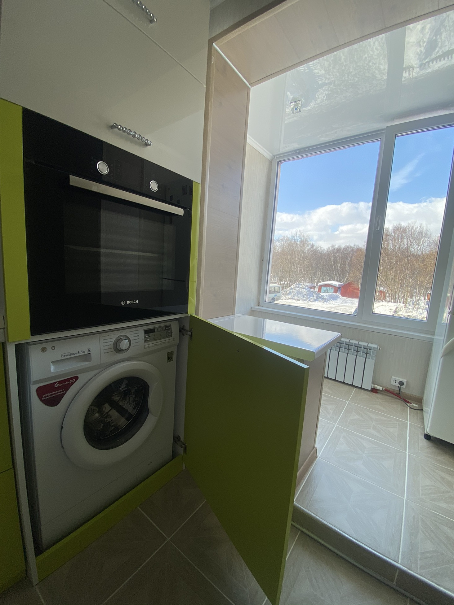 Очень уютная планировка с тремя балконами (один из которых совмещен с кухней, с тёплым полом).