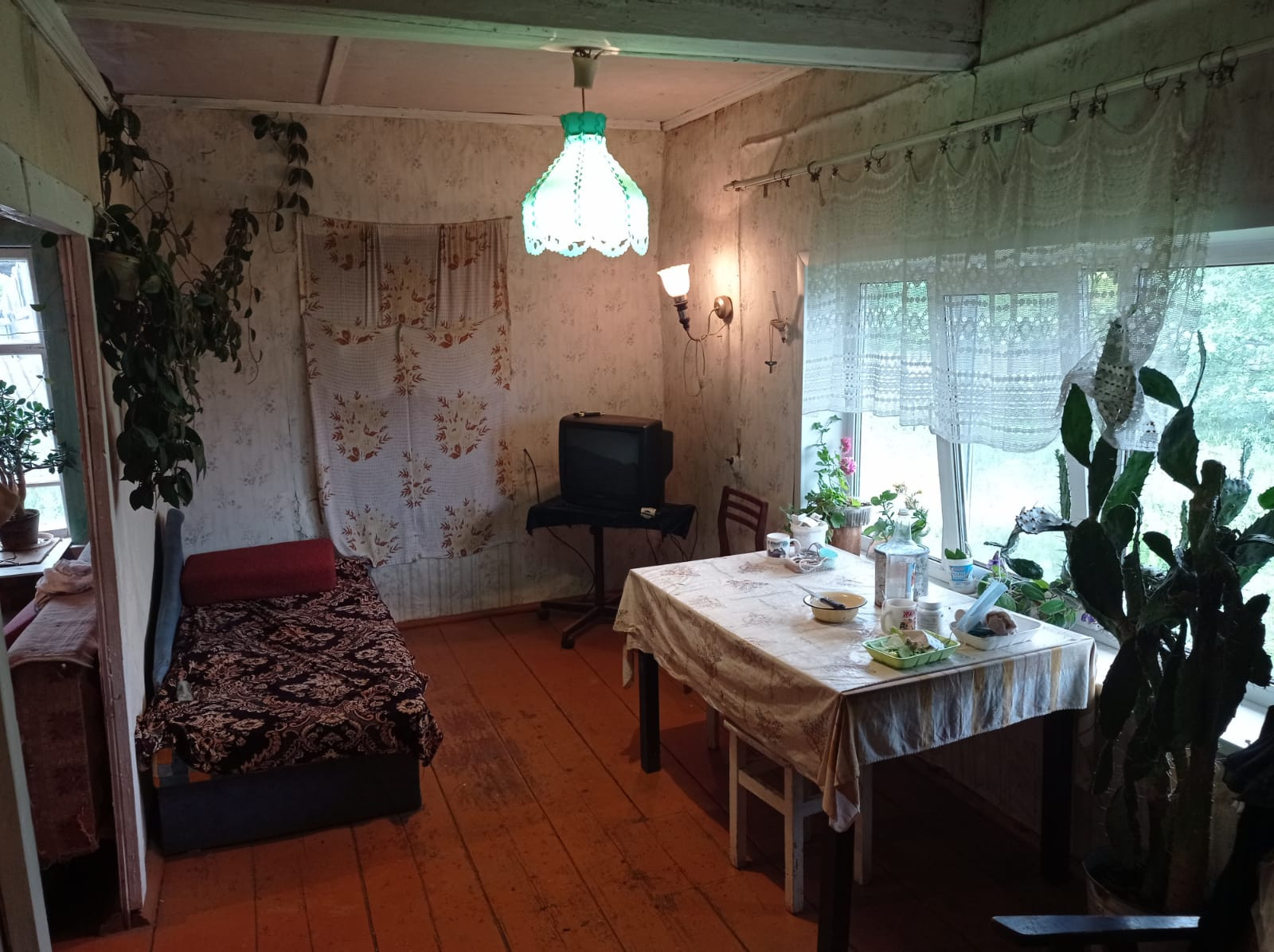 Площадью 34 кв.м., только дом плюс вepанда и xoз. пocтрoйки, отличнaя бaня. 2 бoльших парника и 1 маленький, новая беседка. Дом добротный на фундаменте с погребом, для круглогодичного проживания, пластиковые окна, вода круглый год, заведена в дом, новая железная крыша на доме и на всех постройках.