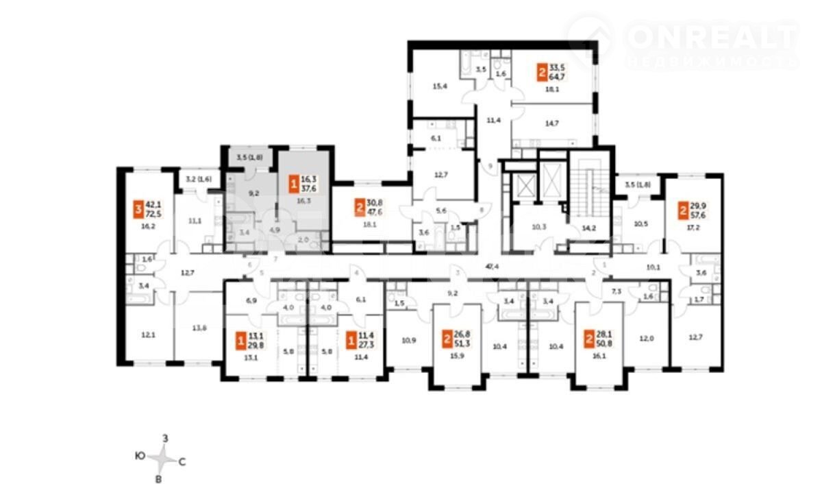 Общая площадь 37.6 м2