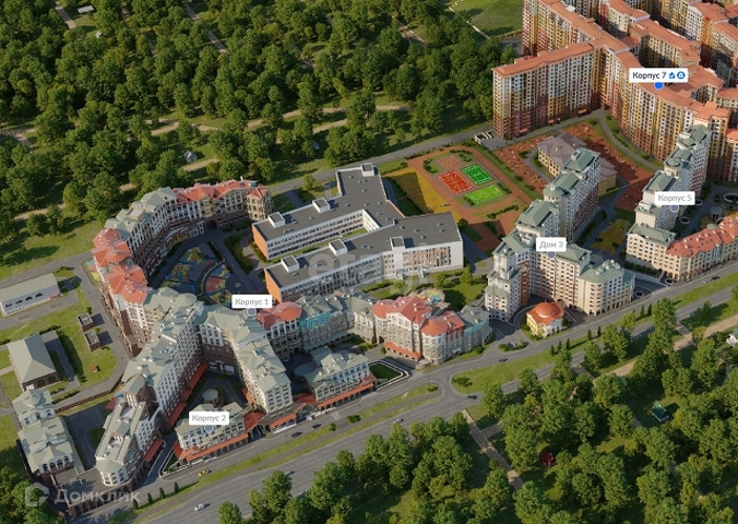 ЖК представлен разноуровневой постройкой в стиле Римской архитектуры.
