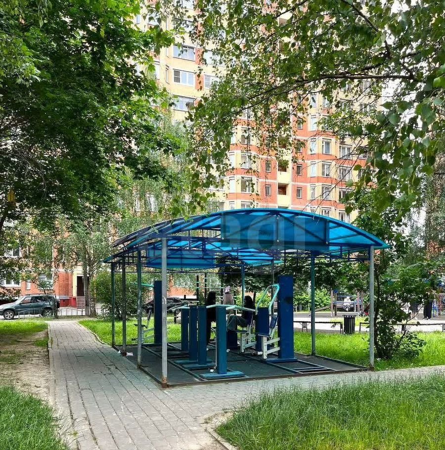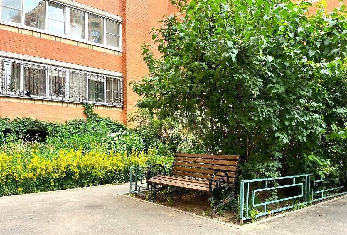 Очень зелёный уютный двор: несколько детских площадок, зоны релакса - лавочки и качели, спортивная площадка с тренажерами.