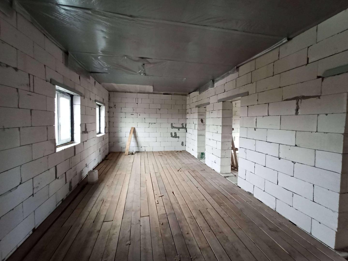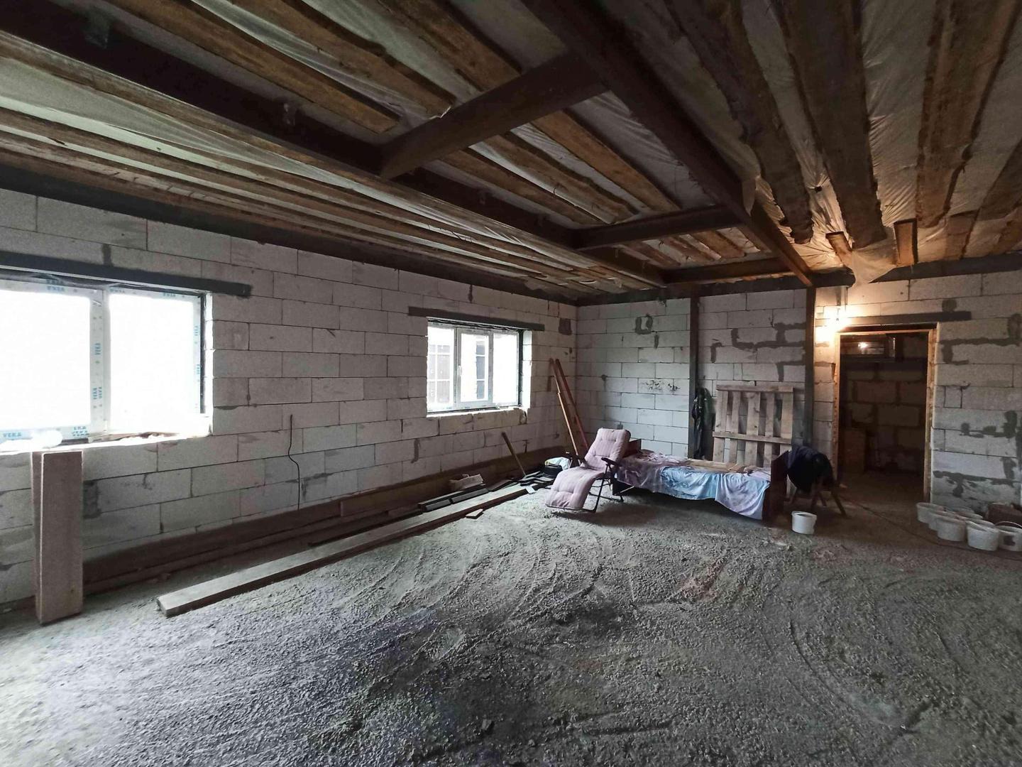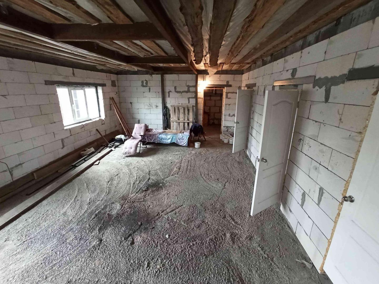 По планировке в доме на первом этаже расположена кухня-гостинная,две комнаты и санузел,на втором этаже свободная планировка. Из дома в гараж и баню можно попасть не выходя на улицу.Баня состоит из трёх зон ,зона парилки,отдыха и монолитный бассейн глубиной больше 3 метров.В дом заведены газ,вода,свет, канализация септик.