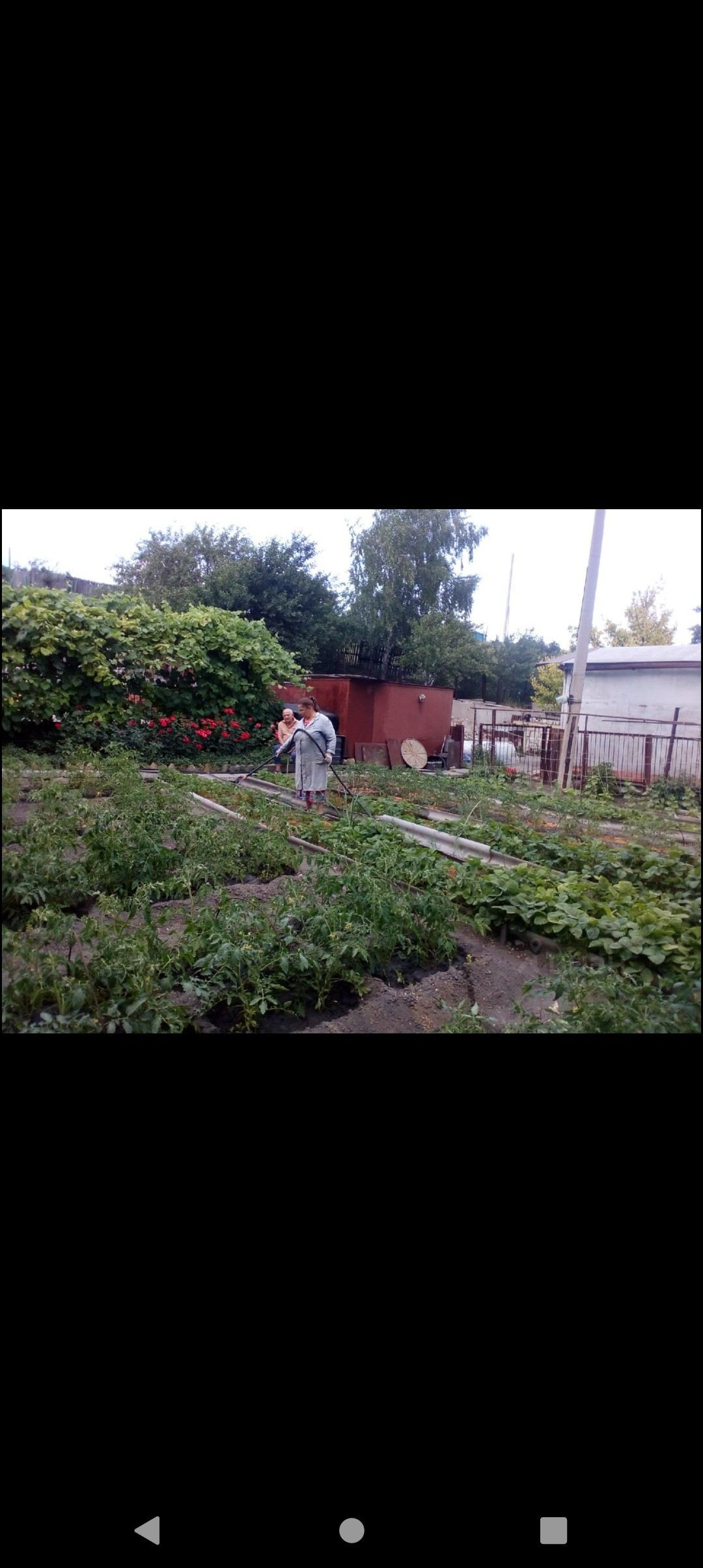 Так же имеются огороды с помидорами, огурцами, плантацией клубники, кусты малины, крыжовник, шиповник, рябина, виноград разных видов, белый киш-миш и винный темный.