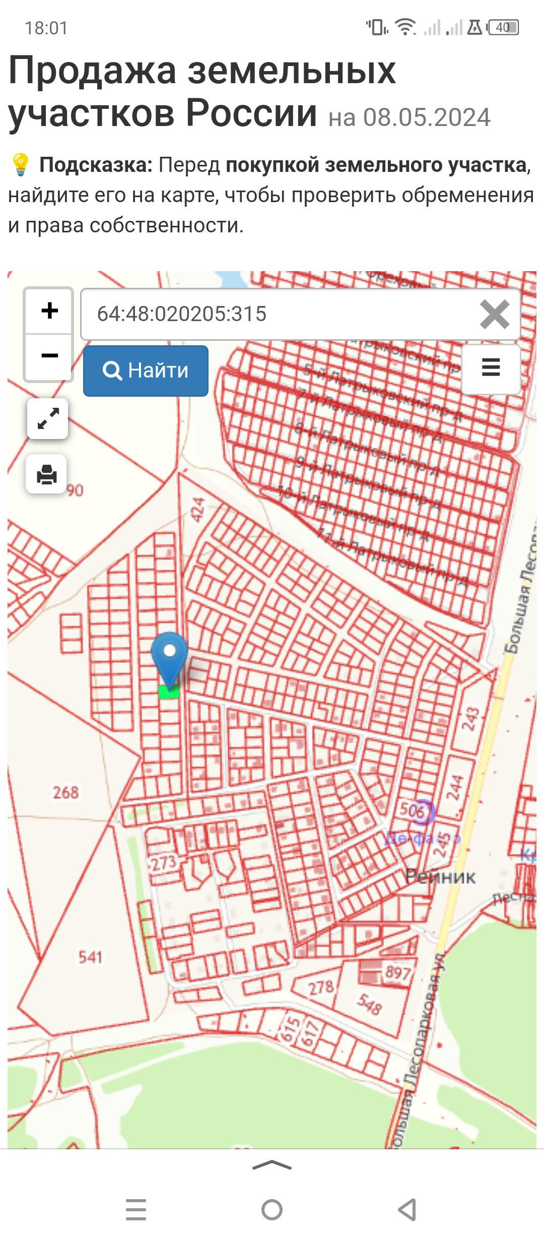 Участок под ИЖС, 10 сот. на продажу в поселке Рейник