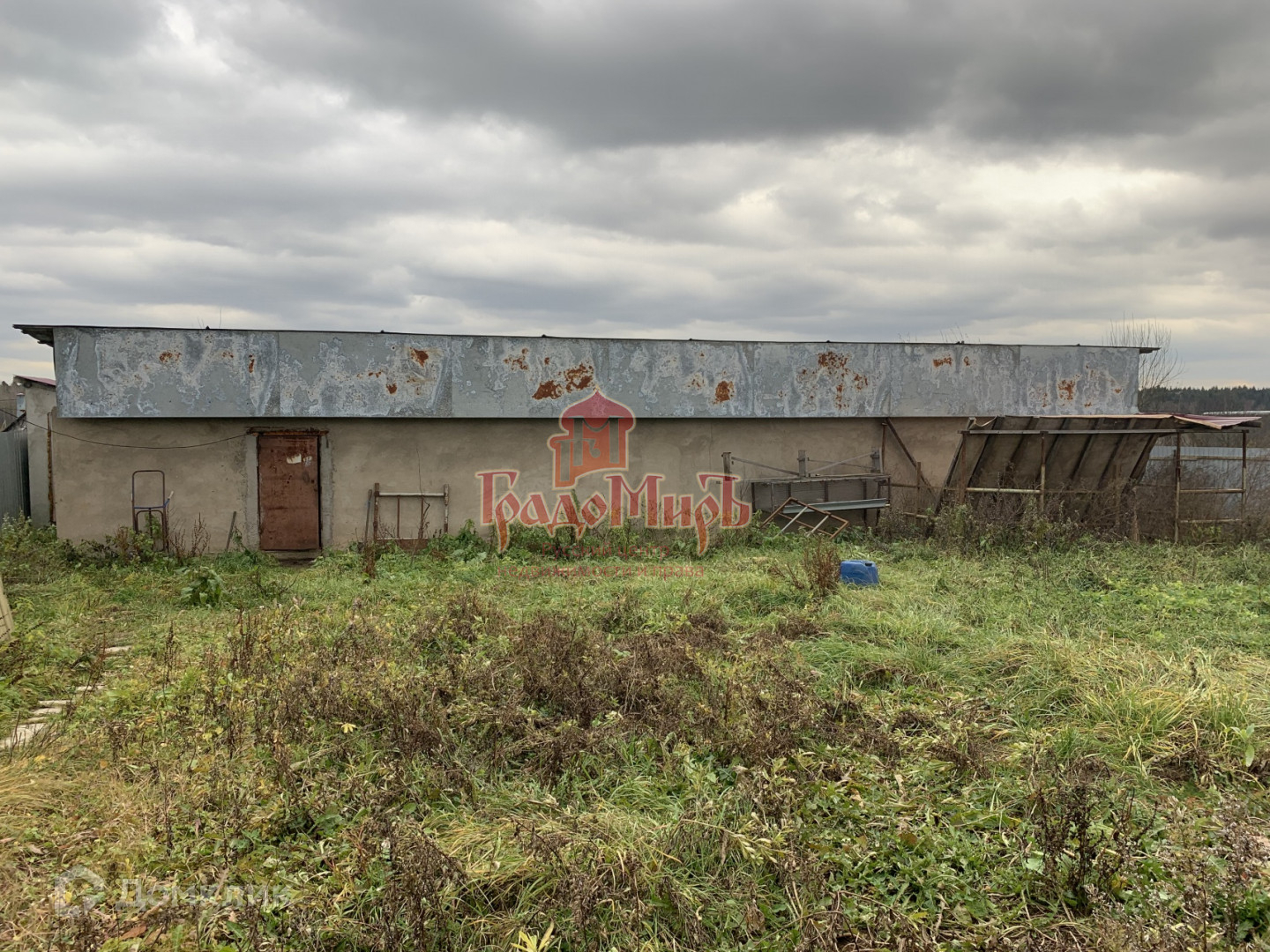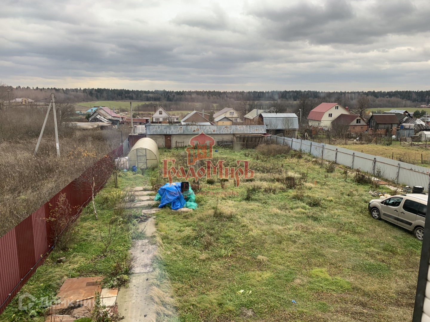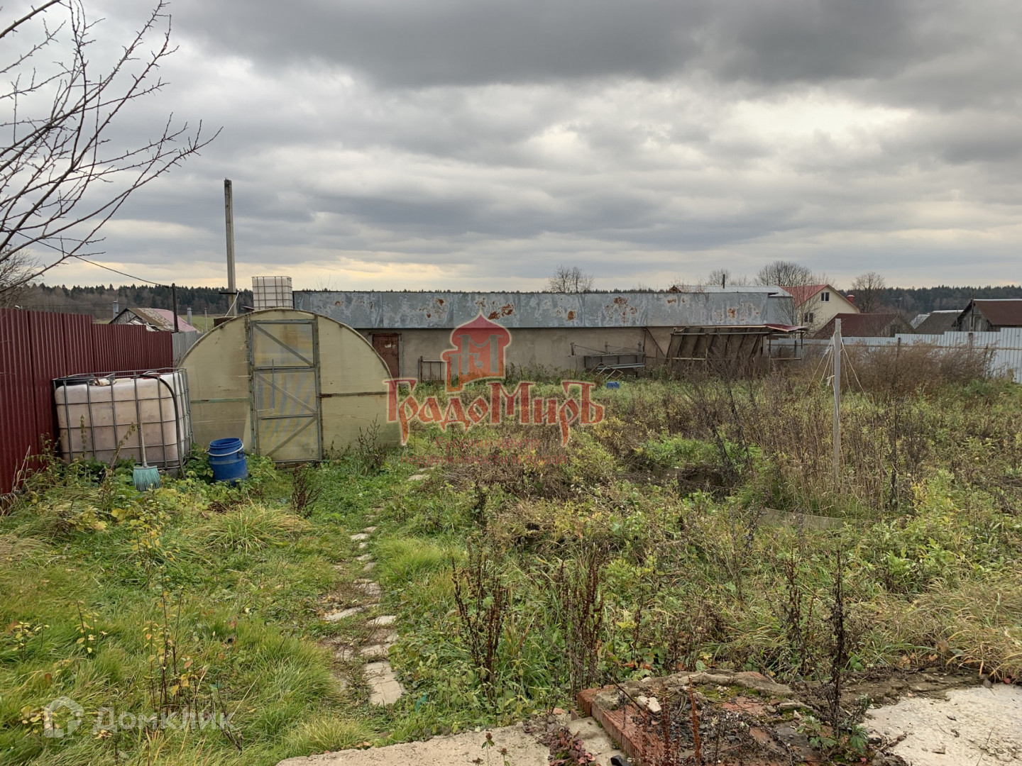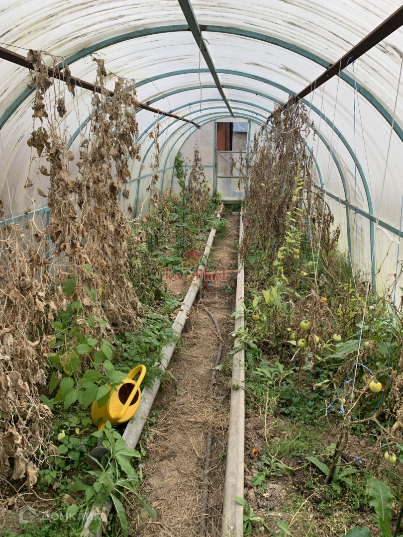 Огорожен забором, сделаны откатные ворота, в дальней части участка построен сарай из блоков.