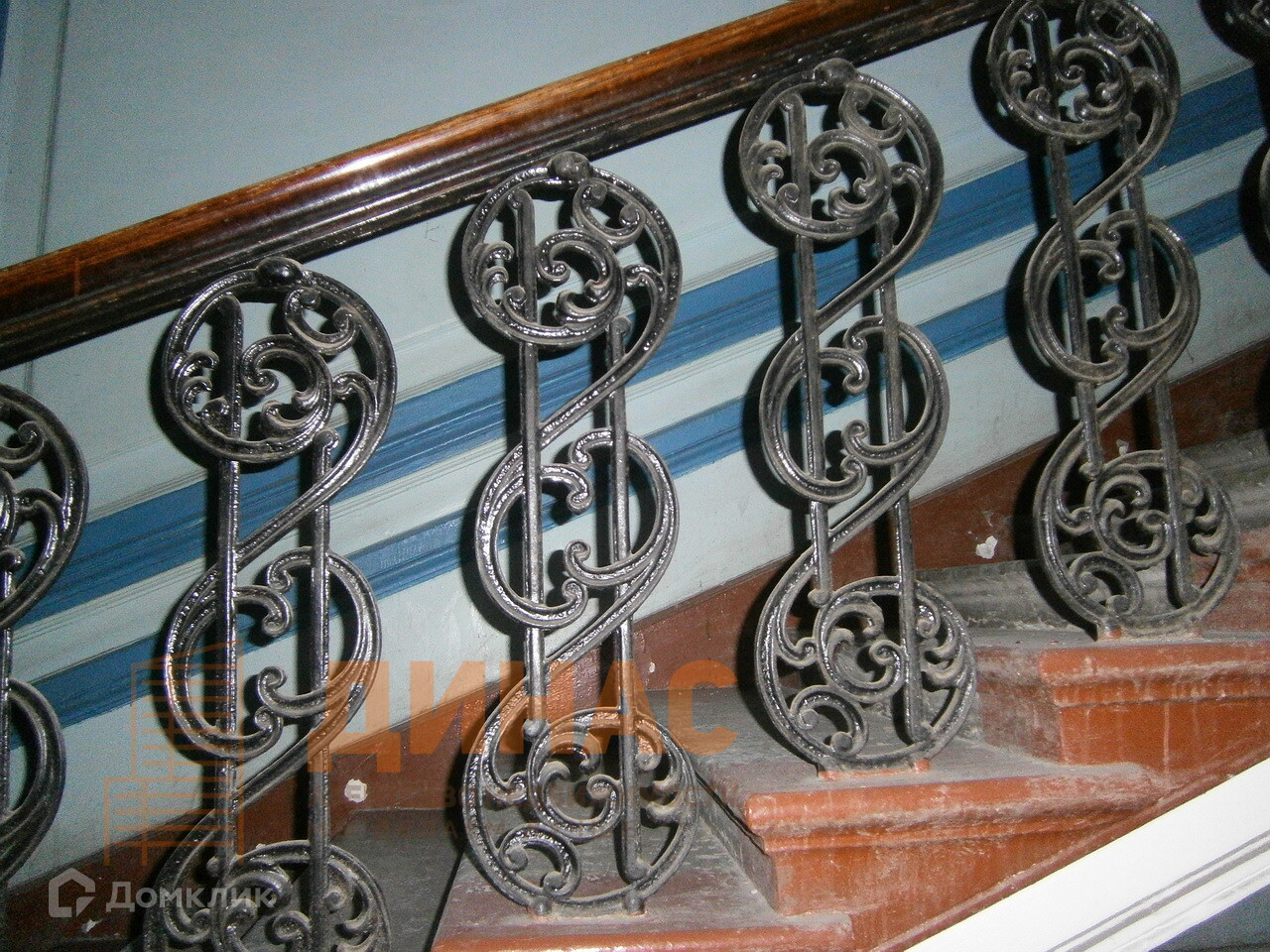Красивая парадная дома с кованными ограждениями лестничного марша.