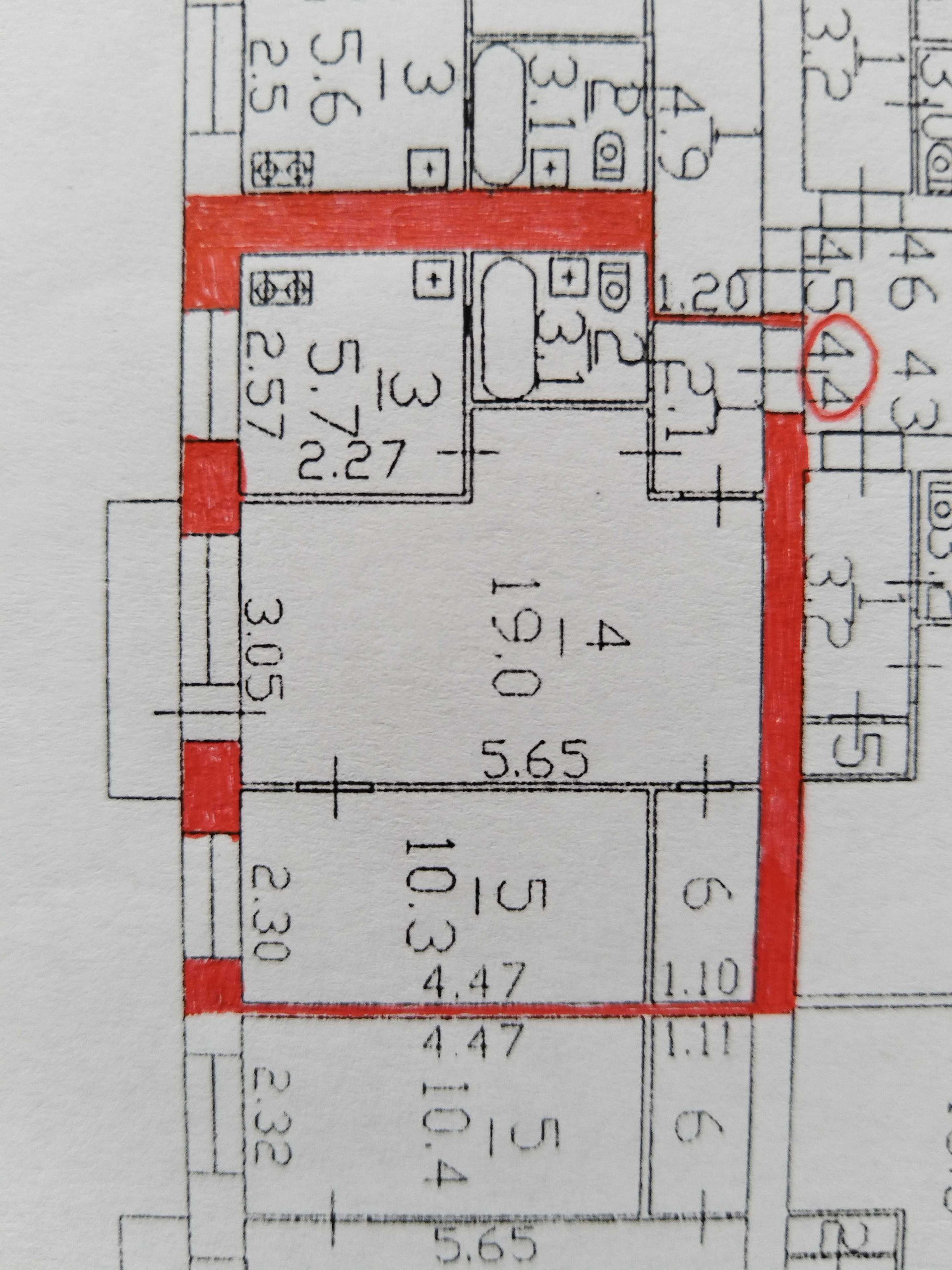 Общая площадь 42.7 м2