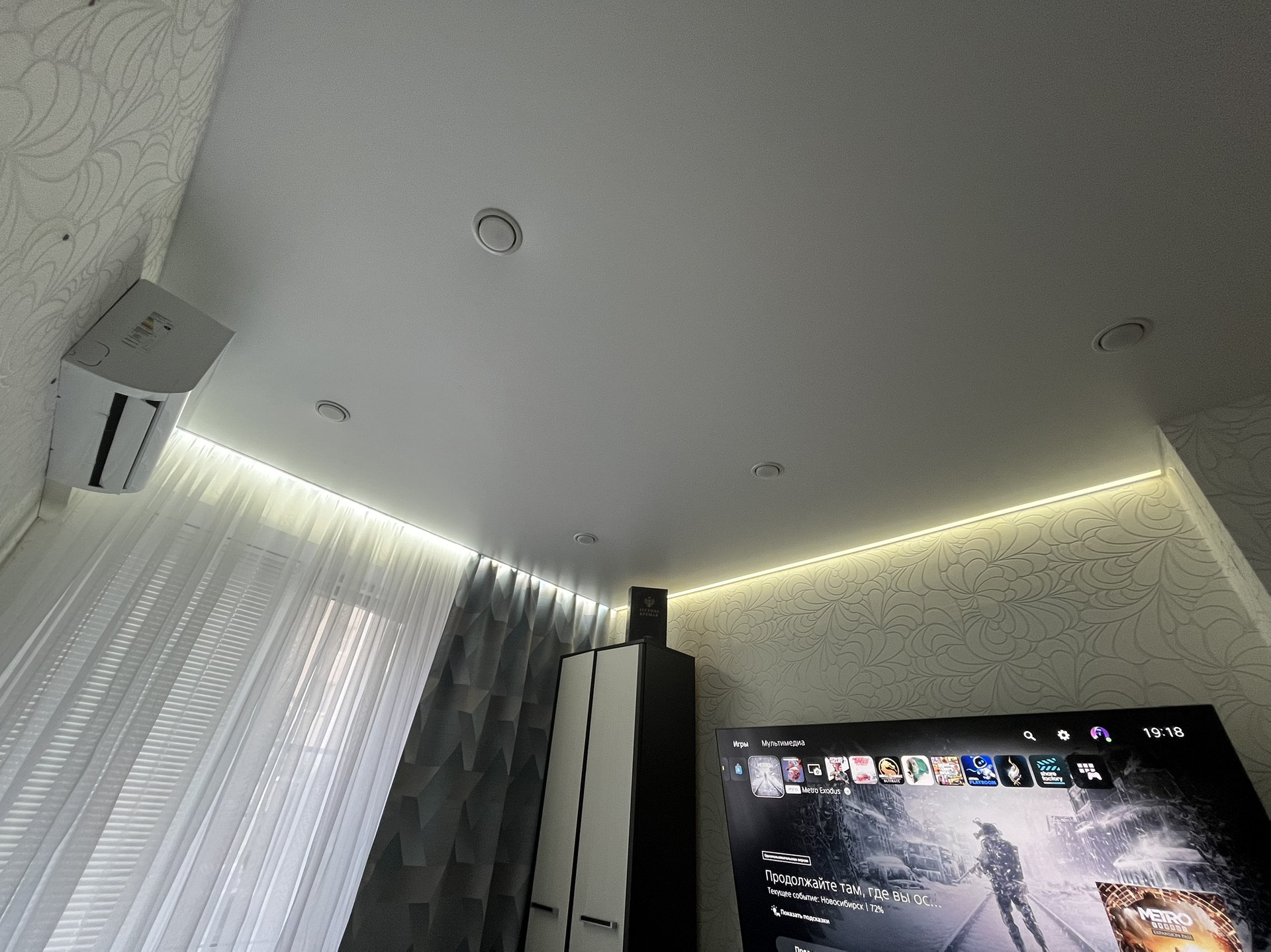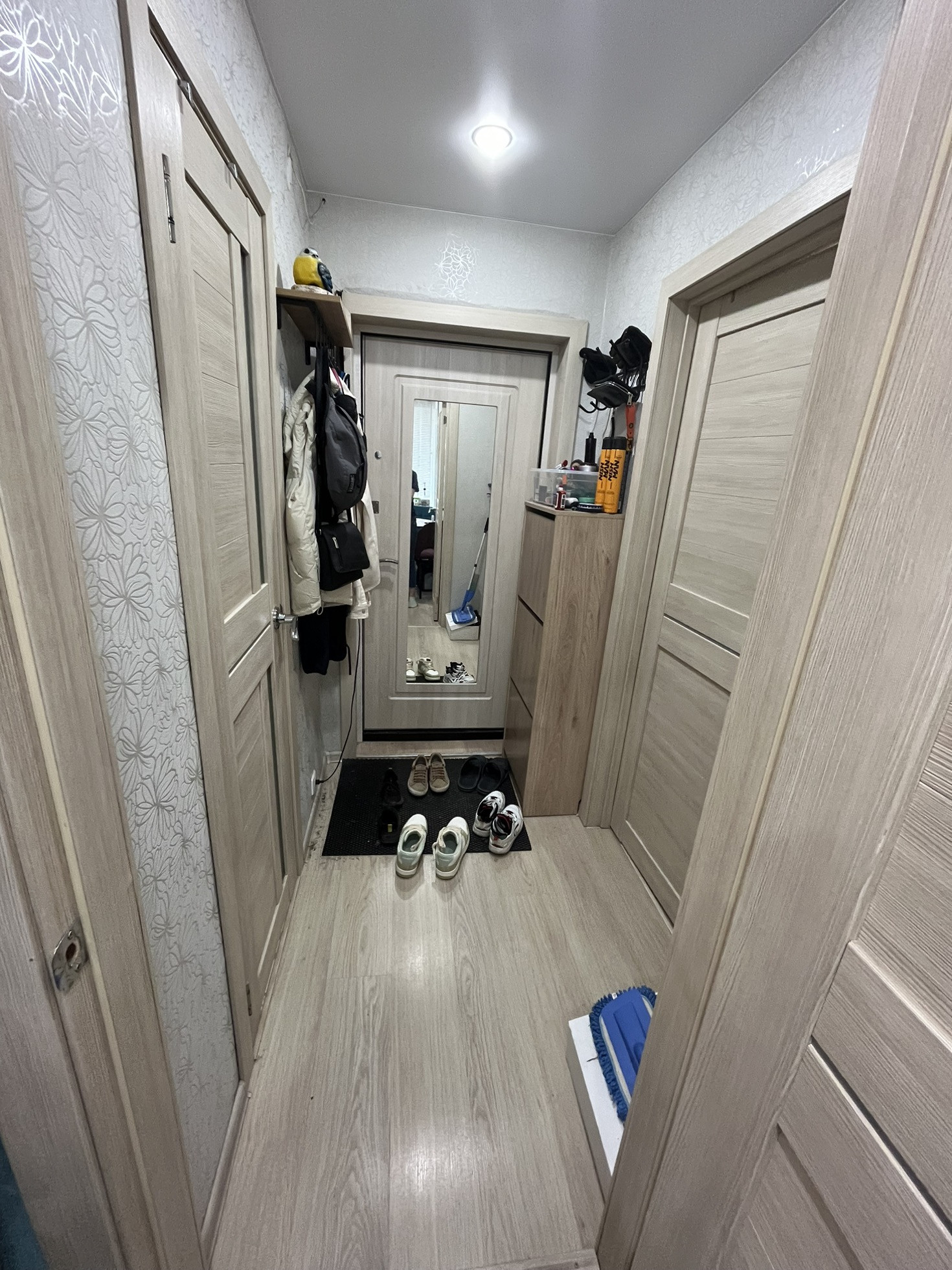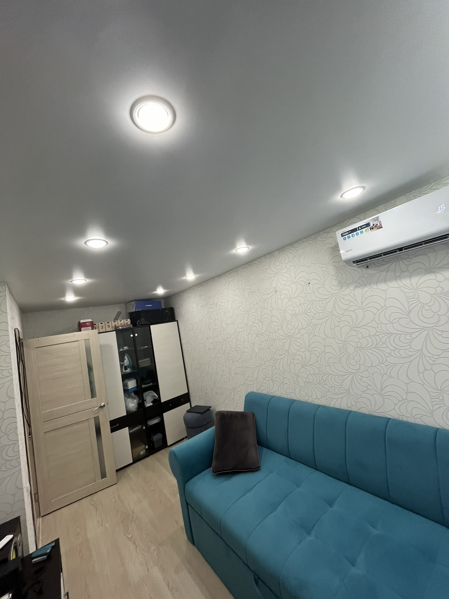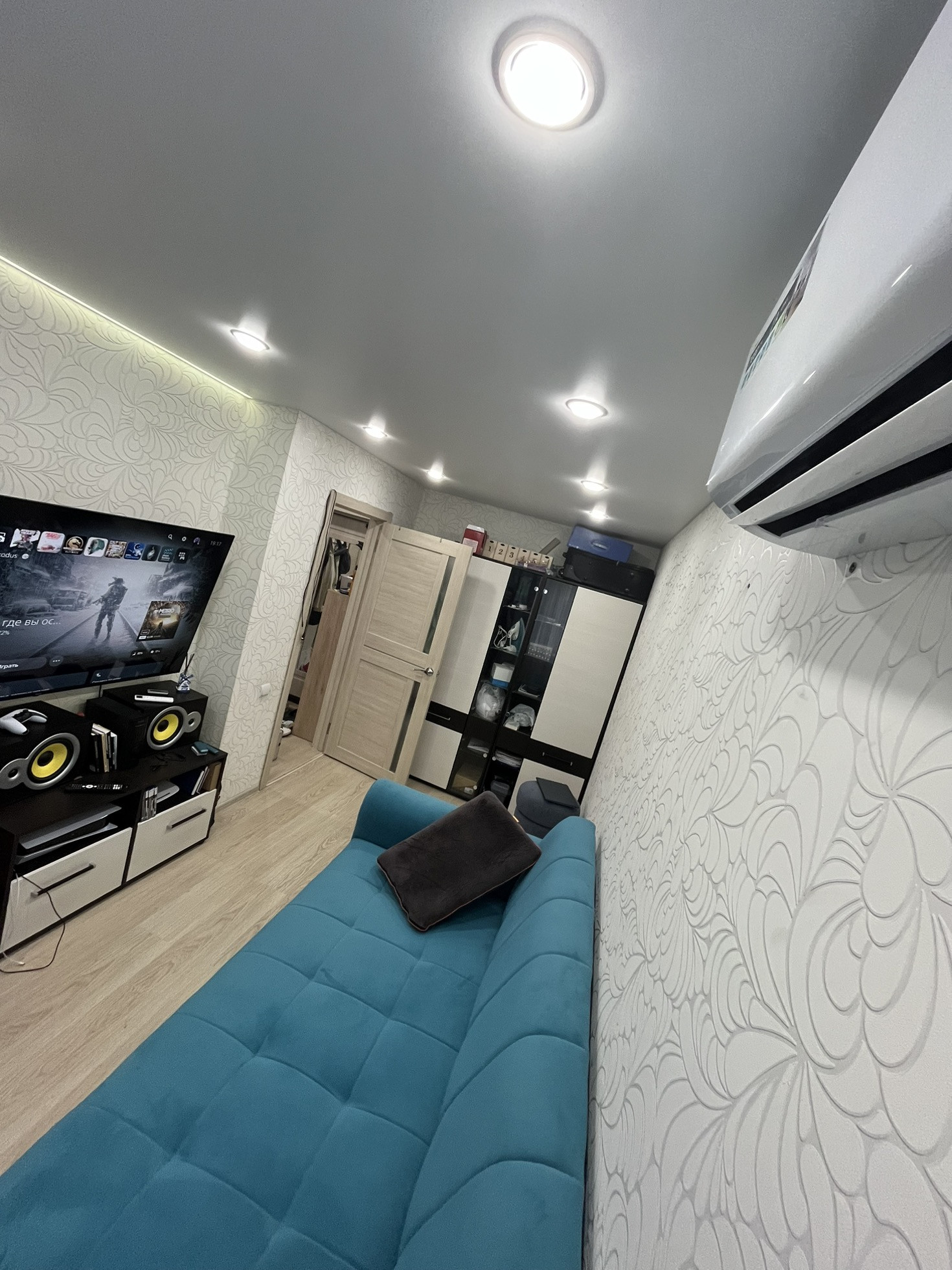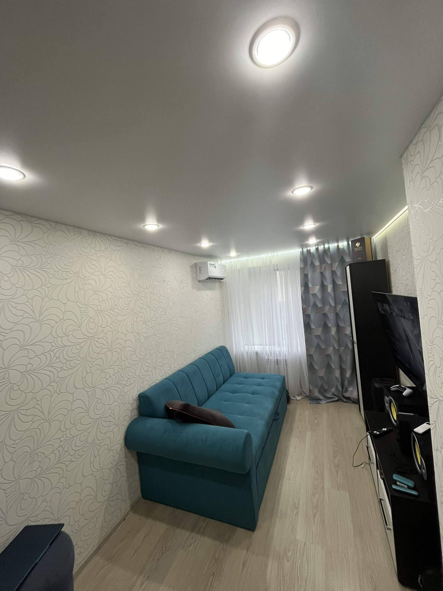 В квартире сделан косметический ремонт - ламинат, натяжные потолки с выбором сценариев освещения, установлен кондиционер.
