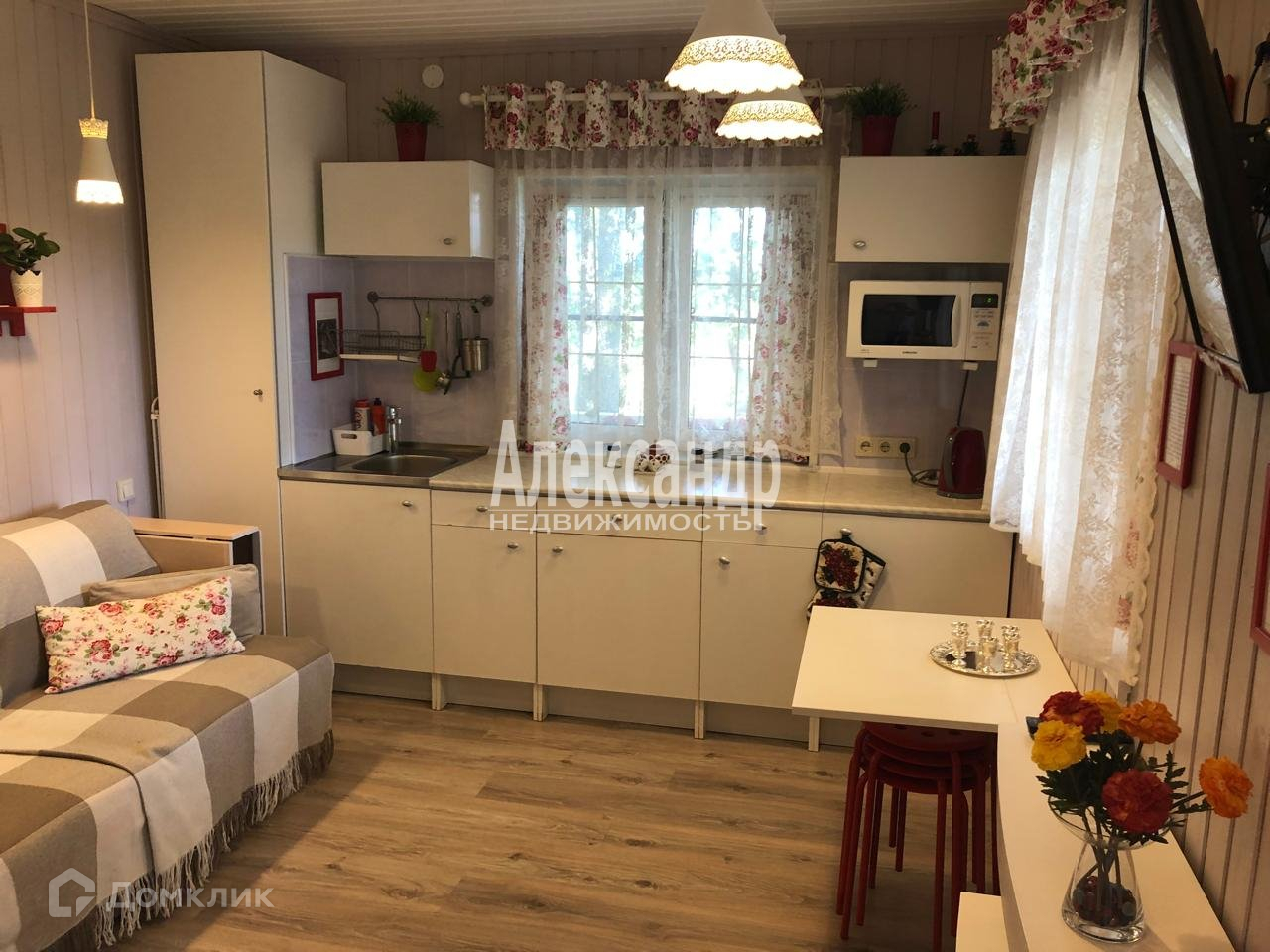В доме есть подвал (финский ледник), прихожая, комната-студия 10 м2, компактный санузел с душевой, отделенный от комнаты функциональной перегородкой, оборудованная кухня-гостиная, на мансарде спальня Установлен кондиционер, есть: холодильник, плита, микроволновка, водонагреватель, телевизор. Дом небольшой, но очень уютный и комфортный.