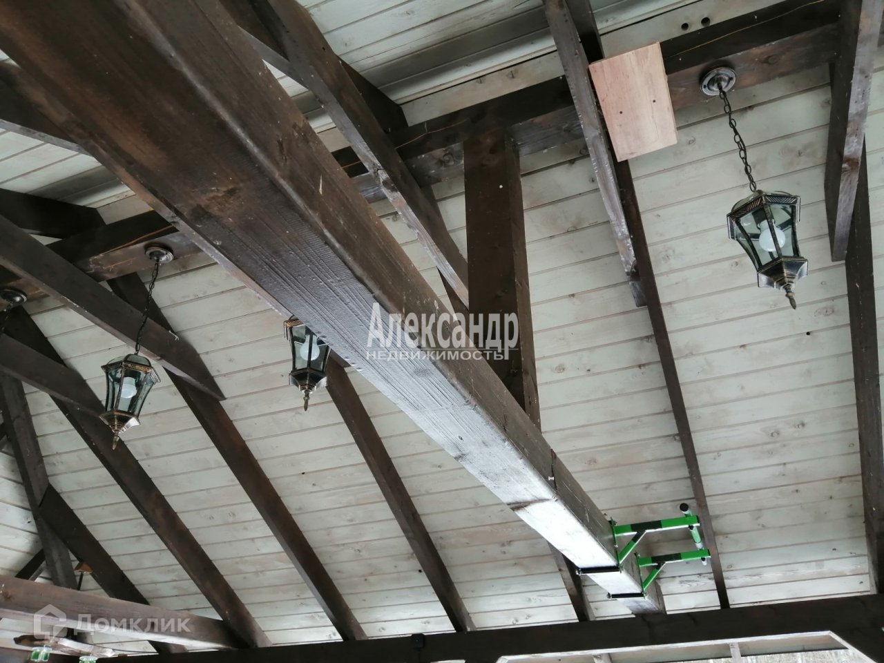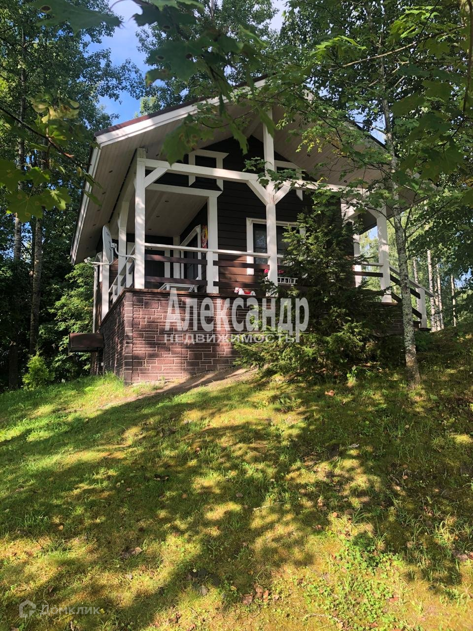 Из бруса, 30 кв.м, благоустроенный. Часть площади дома занимает открытая терраса под крышей с шикарным видом на озеро.Очень красивая подсветка крыши дома, по всему периметру.