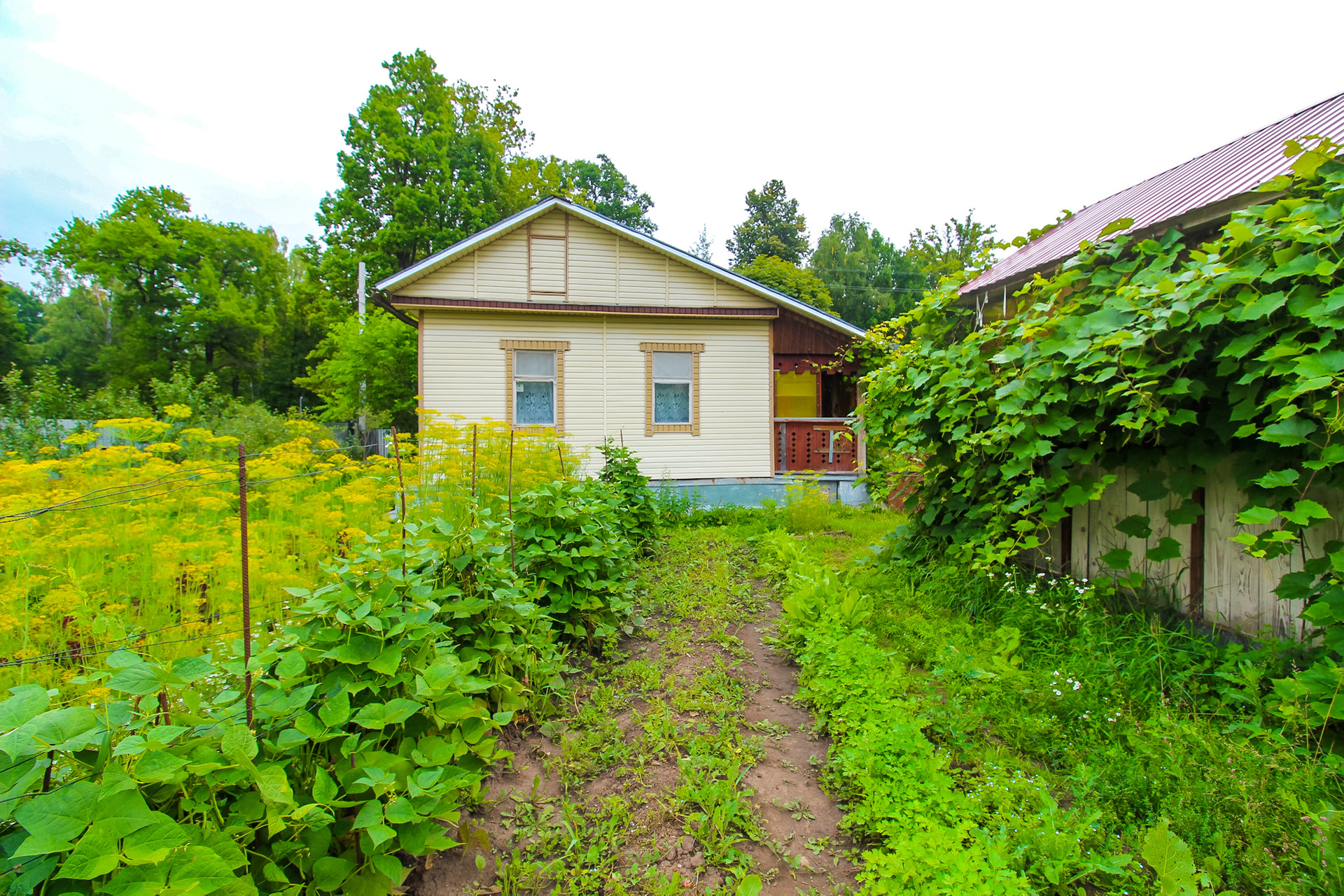 Дом расположен на ухоженном участке 15 соток, на котором располагаются: беседка для отдыха, три теплицы, виноградник (100 кустов, 7 сортов), плодовые деревья. По периметру участок огорожен забором из профлиста. Напротив дома расположен хозблок площадью 112 кв. м., в котором располагаются: баня с комнатой отдыха, столярная мастерская, гараж и погреб.Расположен участок на границе с лесом, вблизи расположено три пруда. Отличная транспортная доступность: остановка общественного транспорта – 3 минуты от дома, остановка электричек, удаленность от Тулы 20 км.