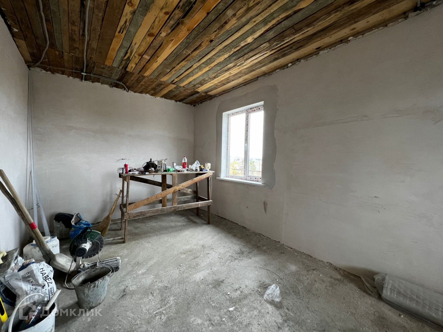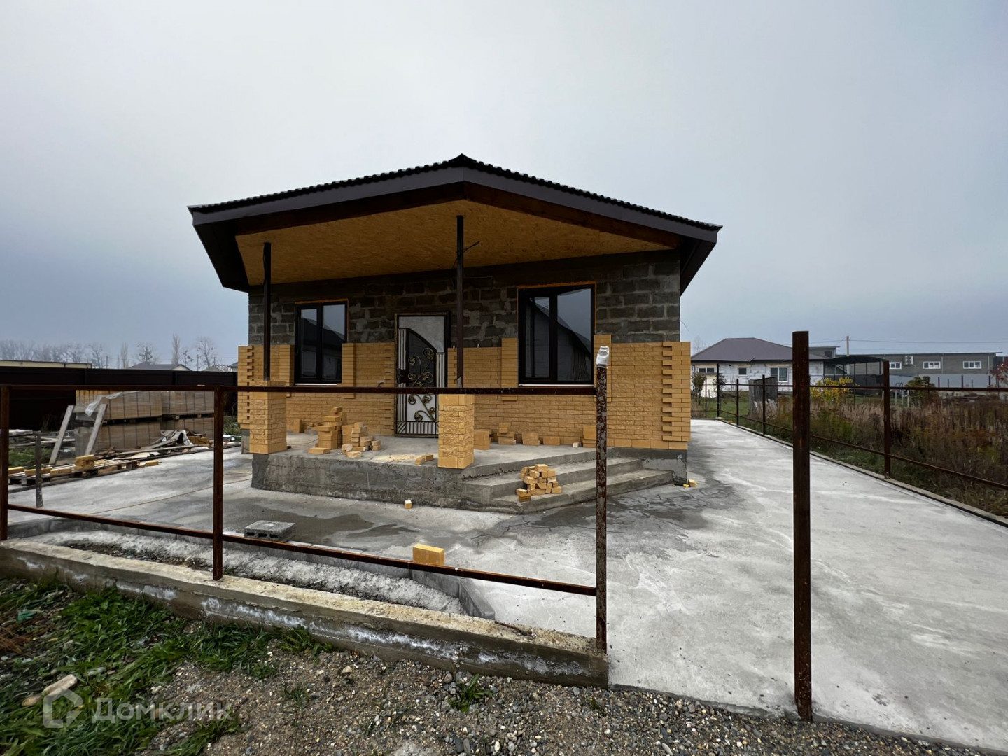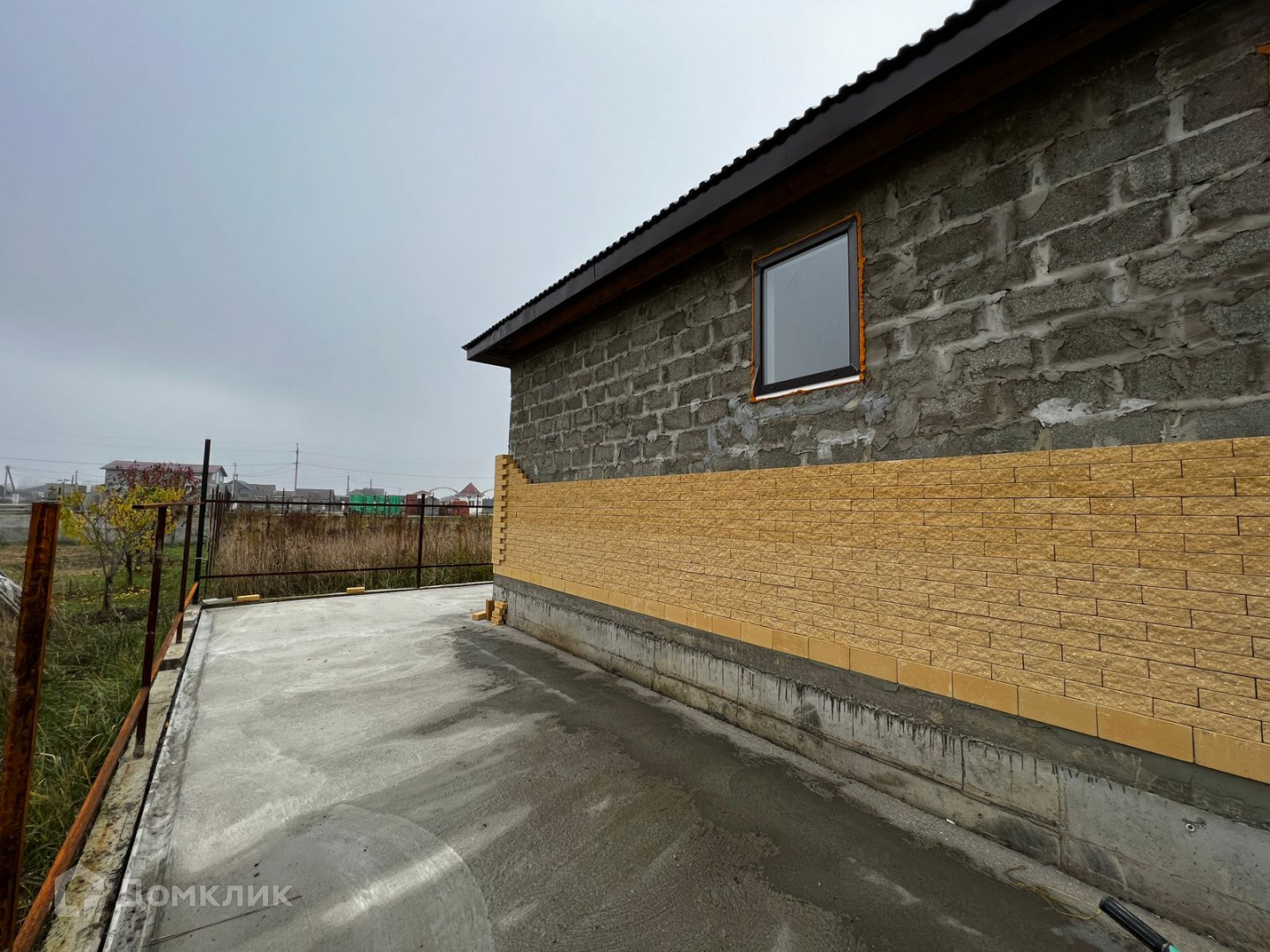 Дом построен из бетонного блока на ленточном фундаменте.