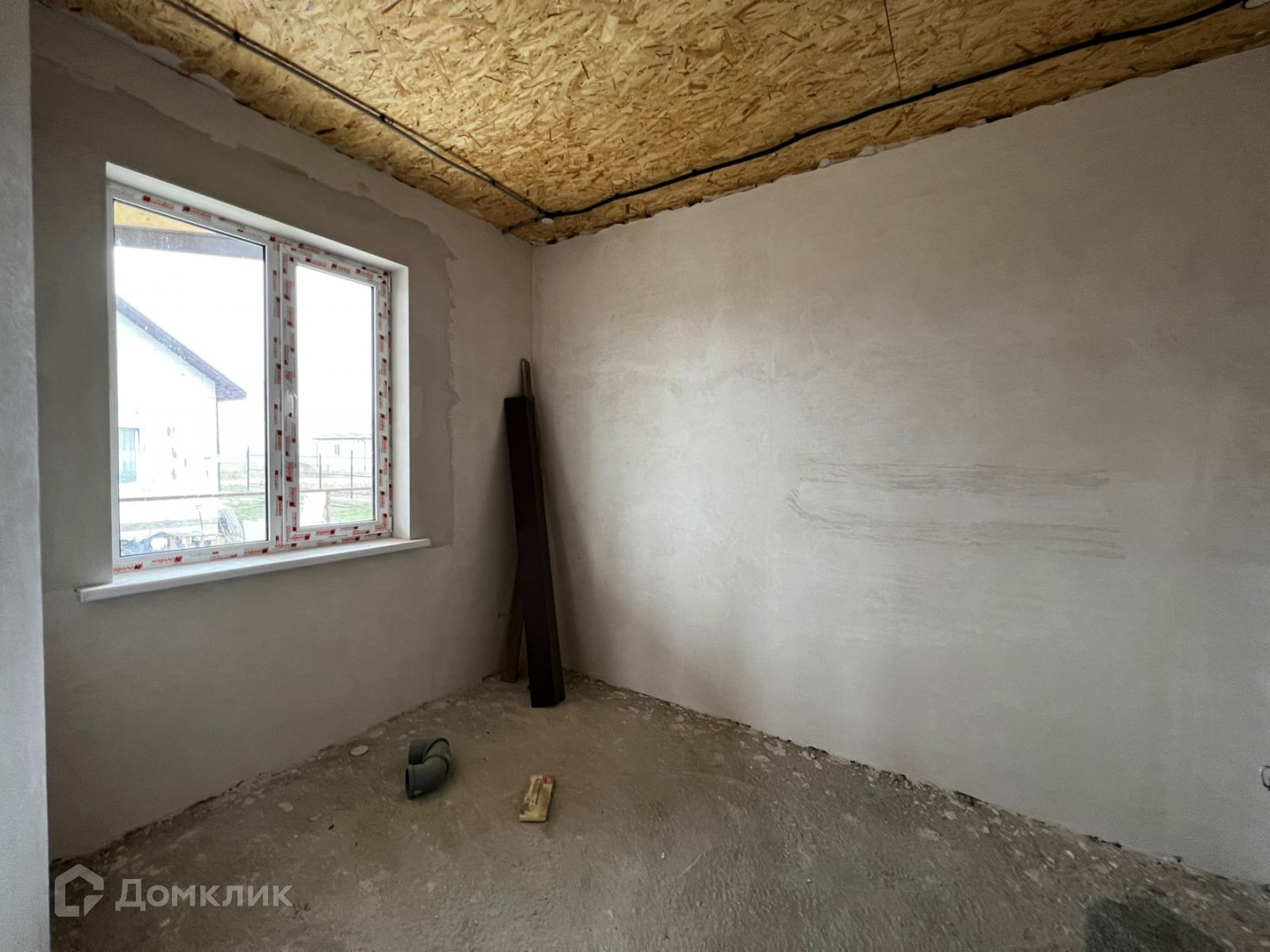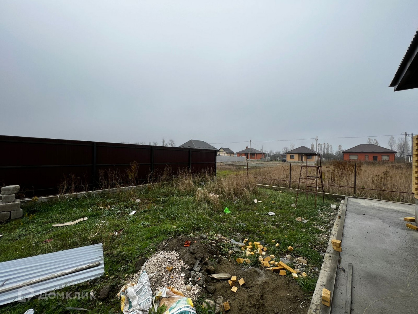 Двор дома забетонирован.