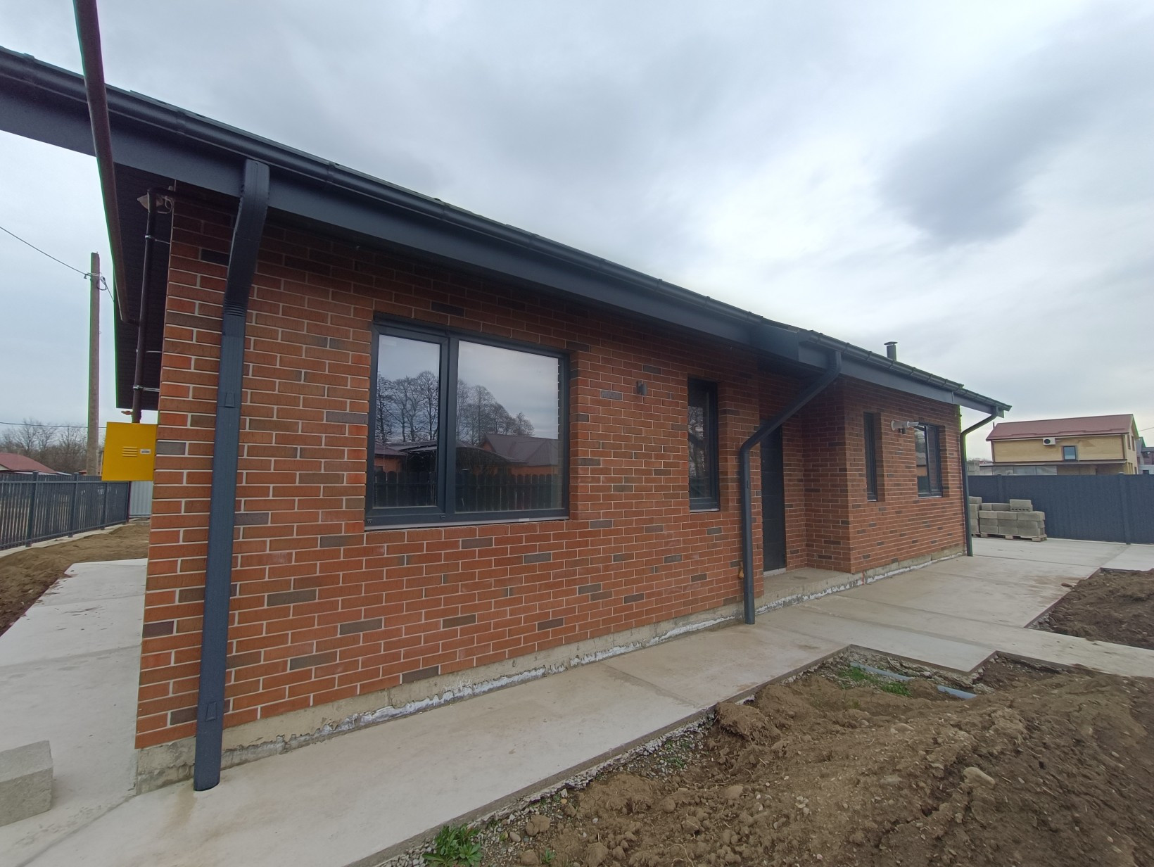 Новый красивый дом, предчистовая отделка, газ на стадии подключения, всё оплачено!!! Большая кухня-гостиная 4,6×8.20, три спальни(20, 16, 14), с/у, прихожая, зем уч 5 соток