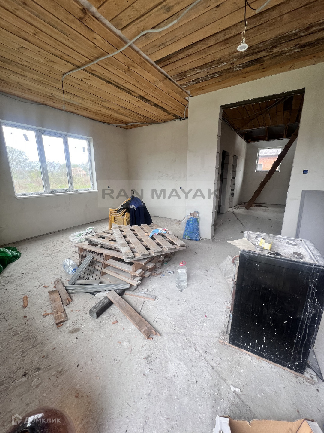 Первый этаж; кухня-гостиная, три изолированные комнаты, совмещенный санузел, котельная.
