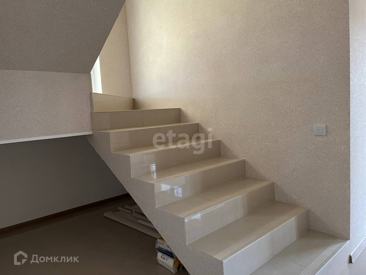 На первом этаже: Прихожая, просторная кухна - гостинная с выходом на террасу, светлая спальная комната, совмещенный санузел и котельная.