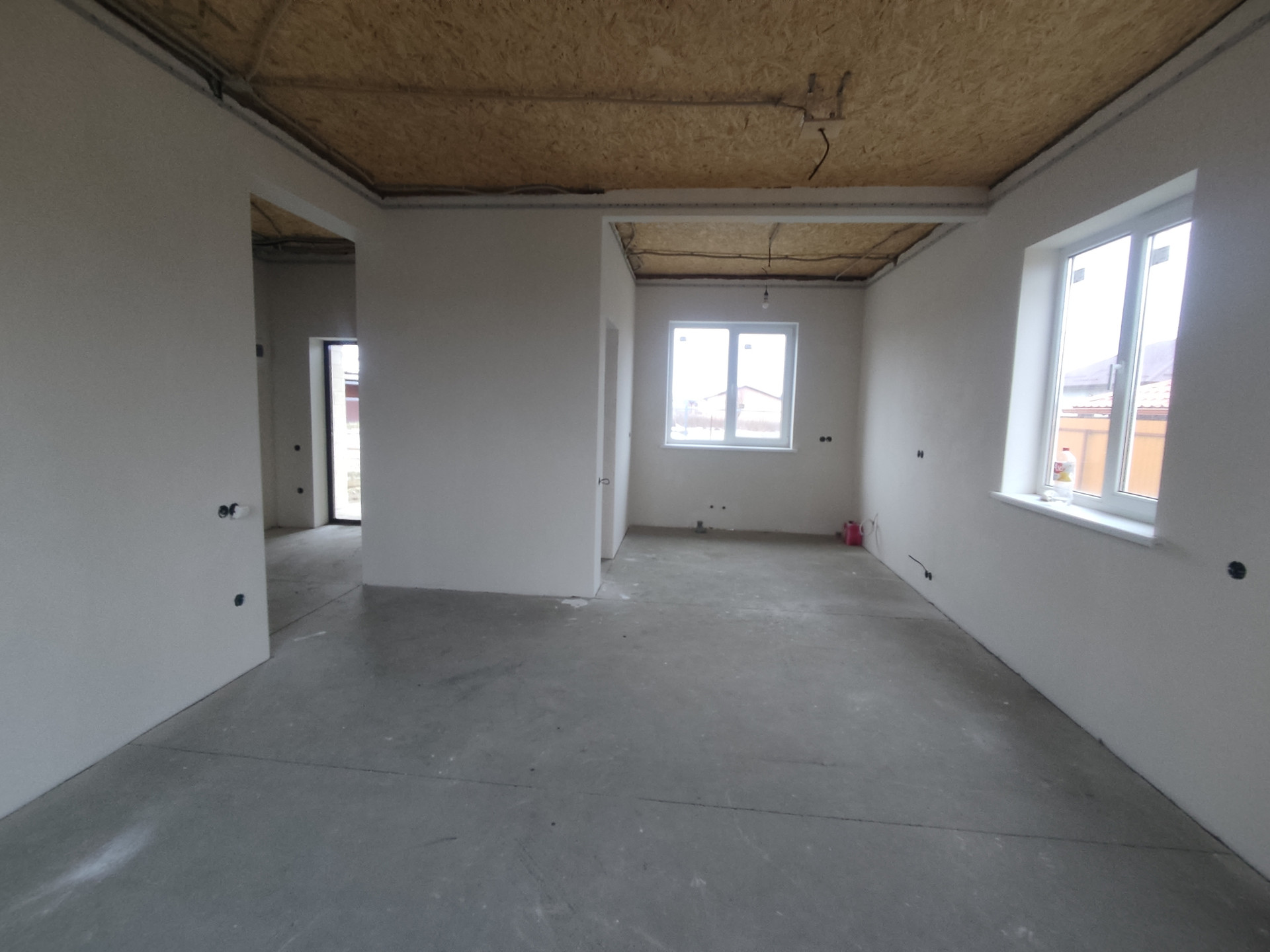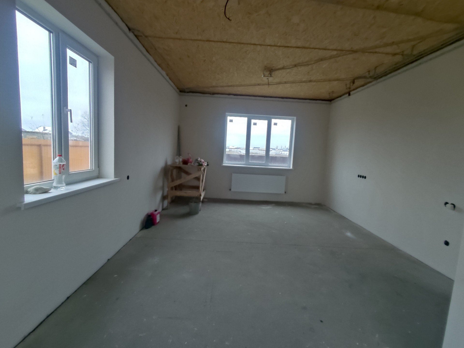 Дом с предчистовой отделкой,  теплые полы, там где плитка. В спальнях пол ламинат. Потолок: ЮСБ (утеплен в два слоя)+натяжной.