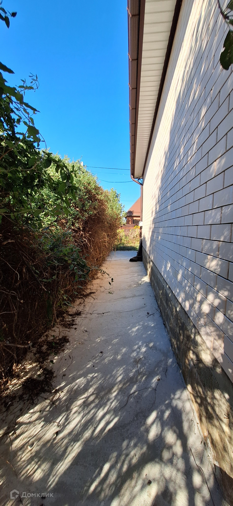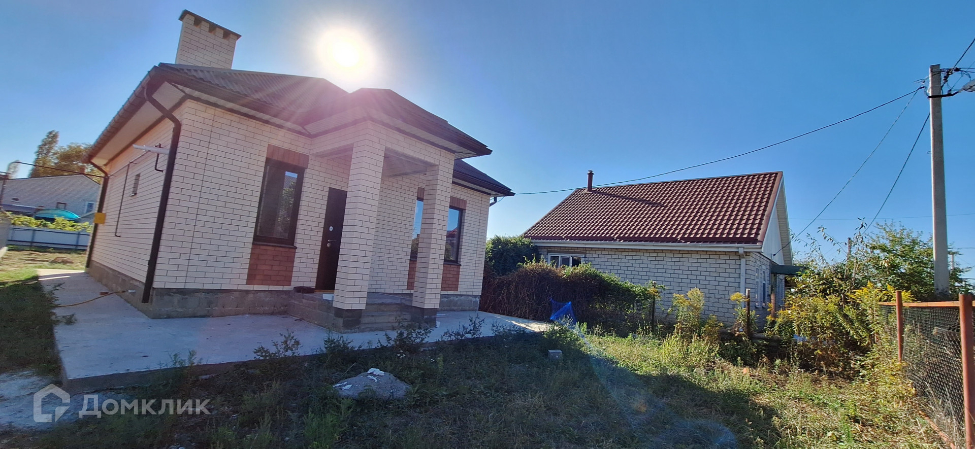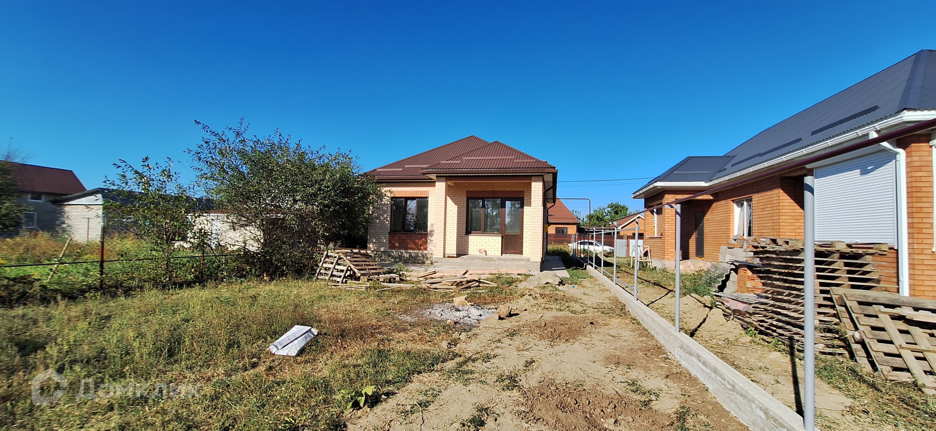 Дом построен из блока, облицован кирпичом.