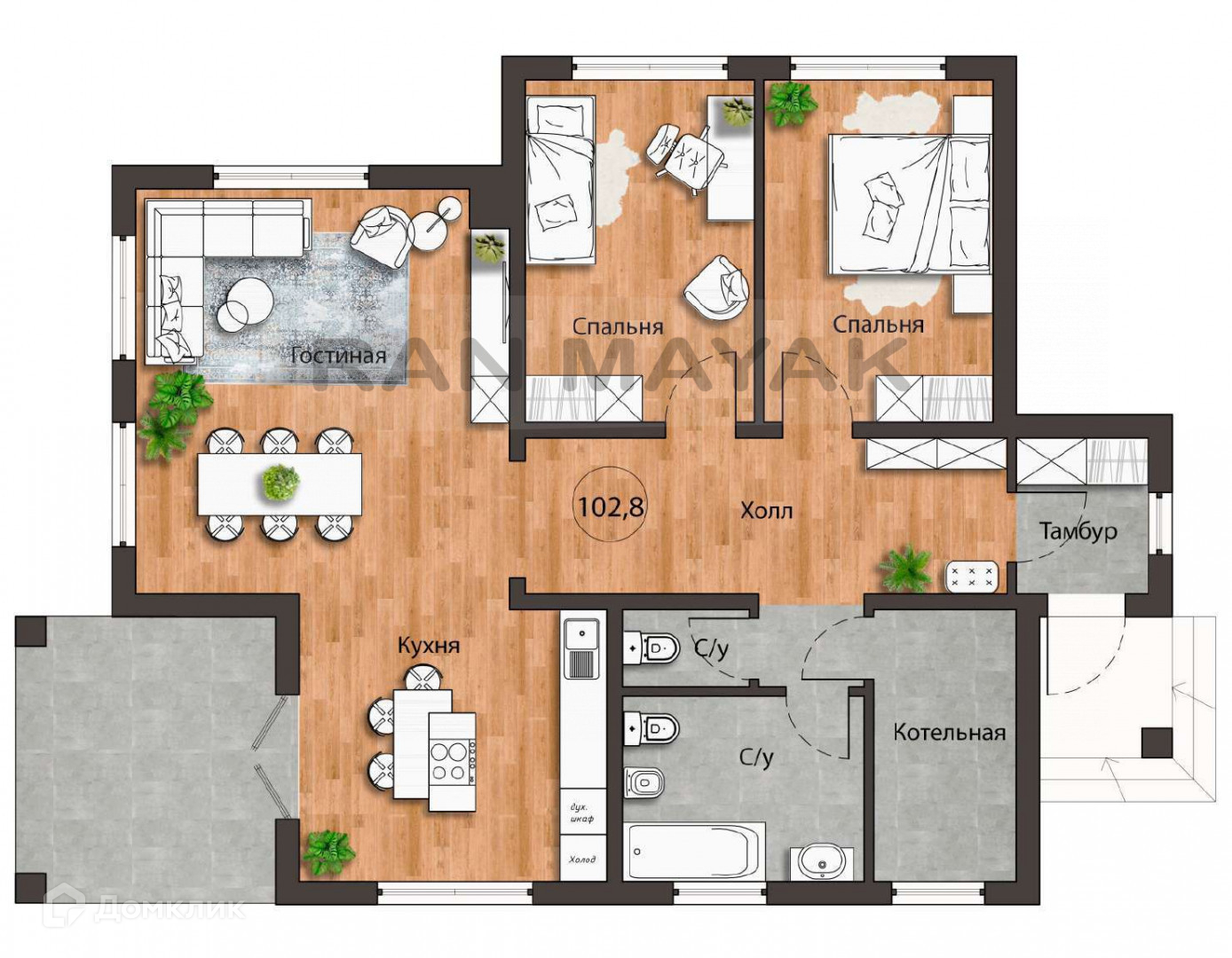Общая площадь 102 м2