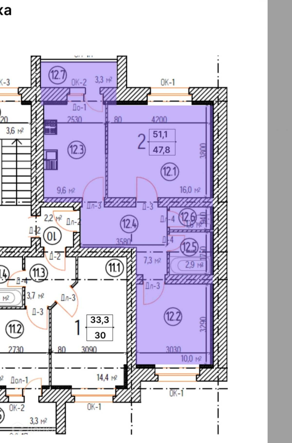 Общая площадь 51 м2