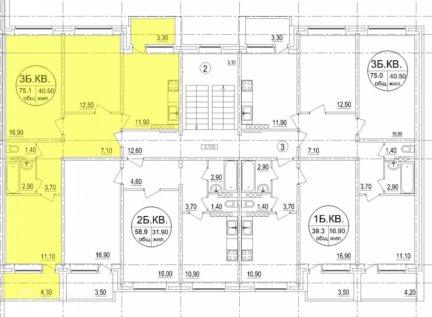 Общая площадь 75.1 м2