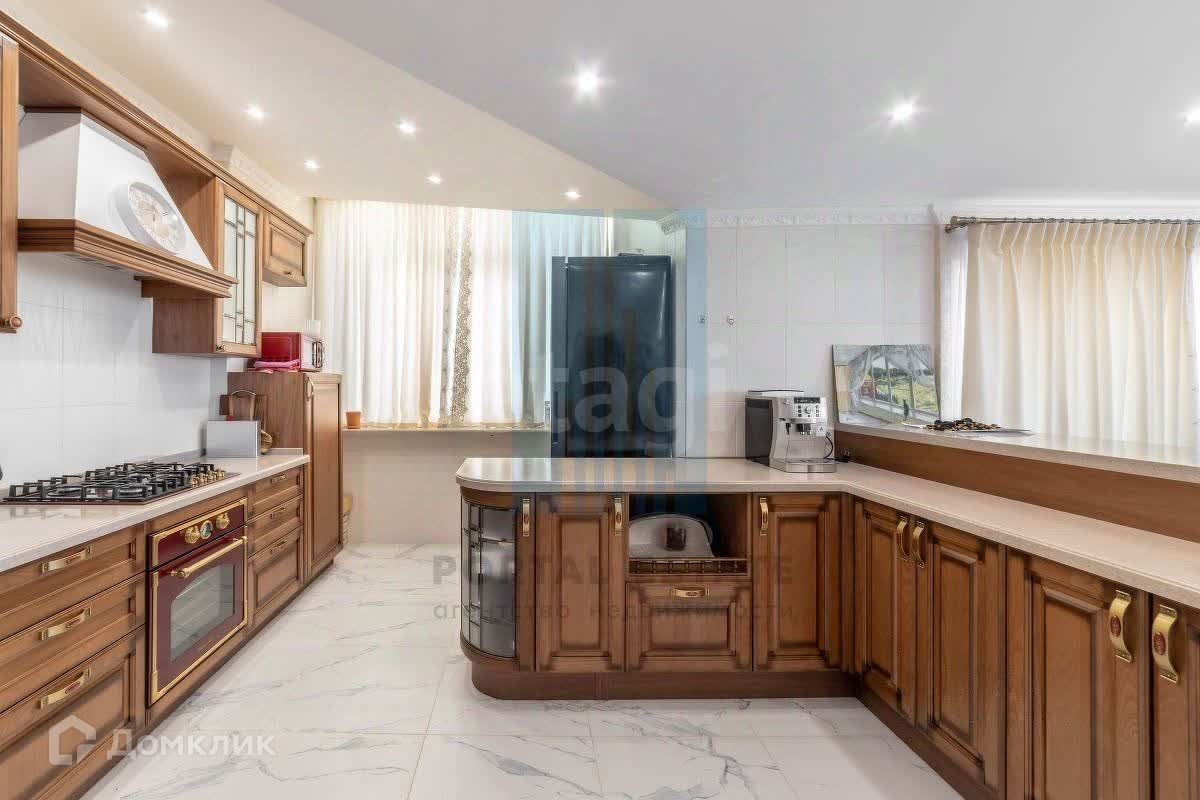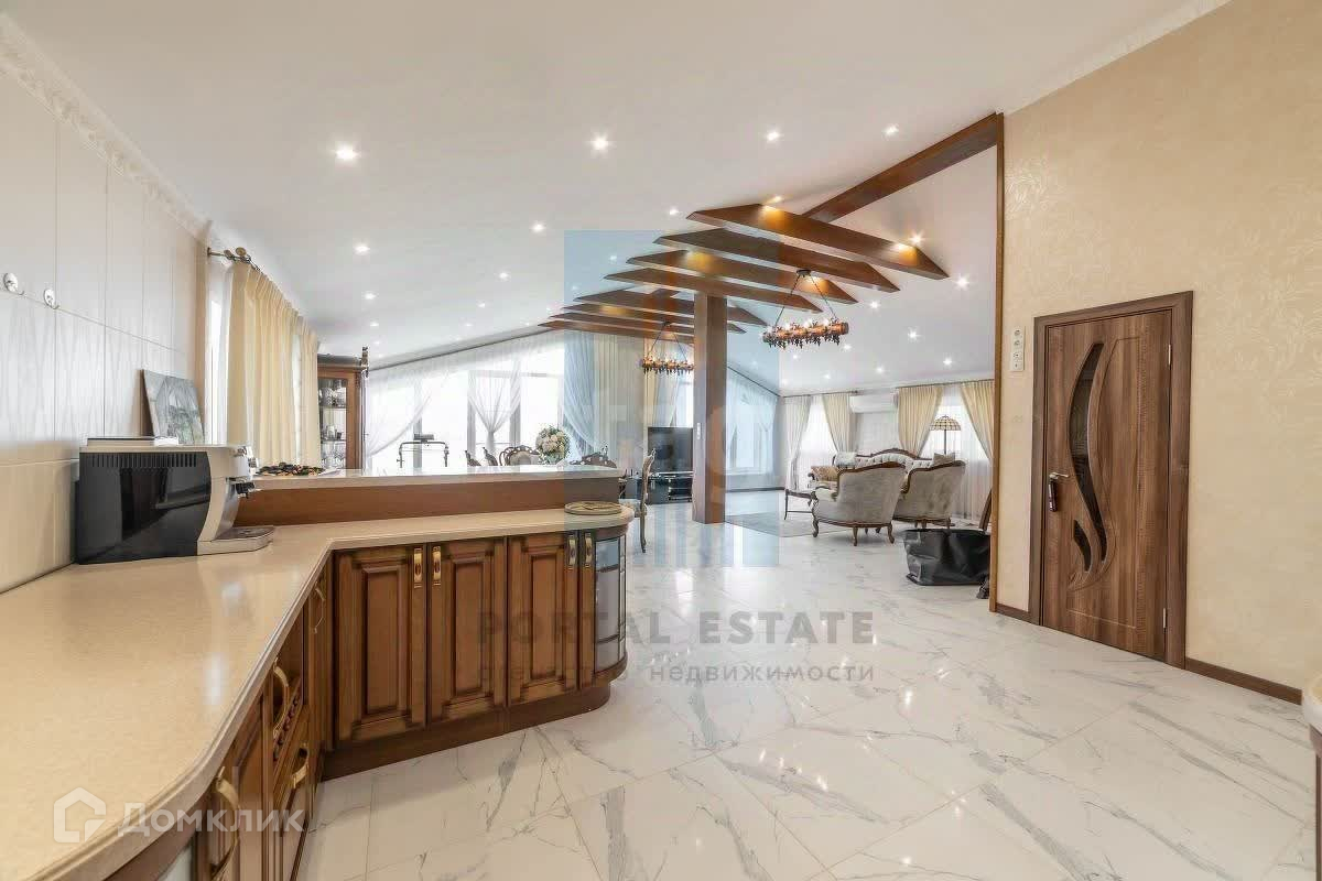 Жилая площадь составляет 89 кв. м, а высота потолков в гостиной достигает впечатляющих 3,6 м, что создает атмосферу свободы и легкости. Гостиная, объединенная с кухней, занимает 55 кв. м и оформлена в современном стиле с использованием высококачественных материалов. Здесь вы найдете действующий камин, который станет центром притяжения для ваших гостей, а также барную стойку из натурального камня, отделяющую кухню от зоны отдыха.