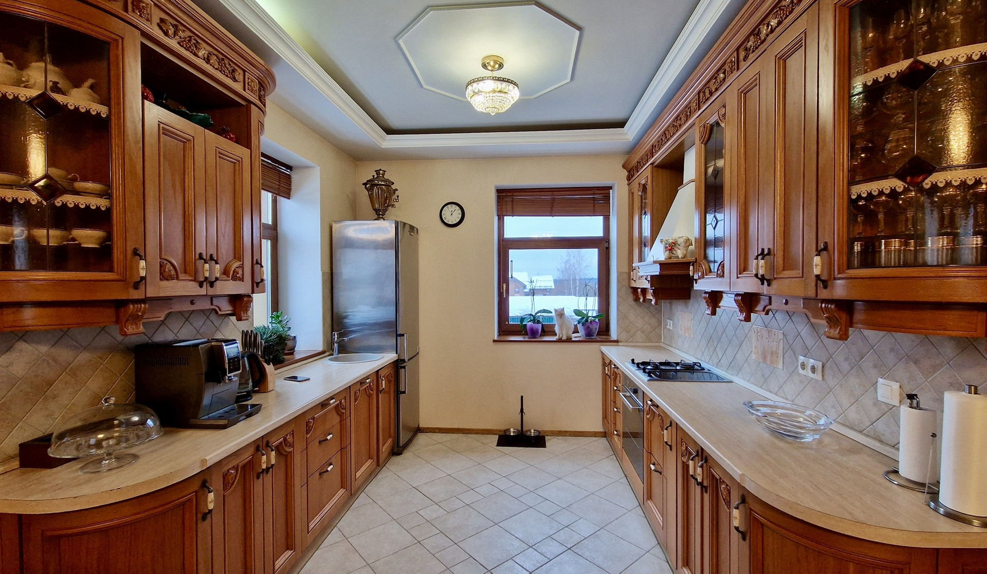 На первом этаже теплые полы с регуляторами, на втором этаже классические радиаторы отопления с регулировкой тепла и датчиками температуры.