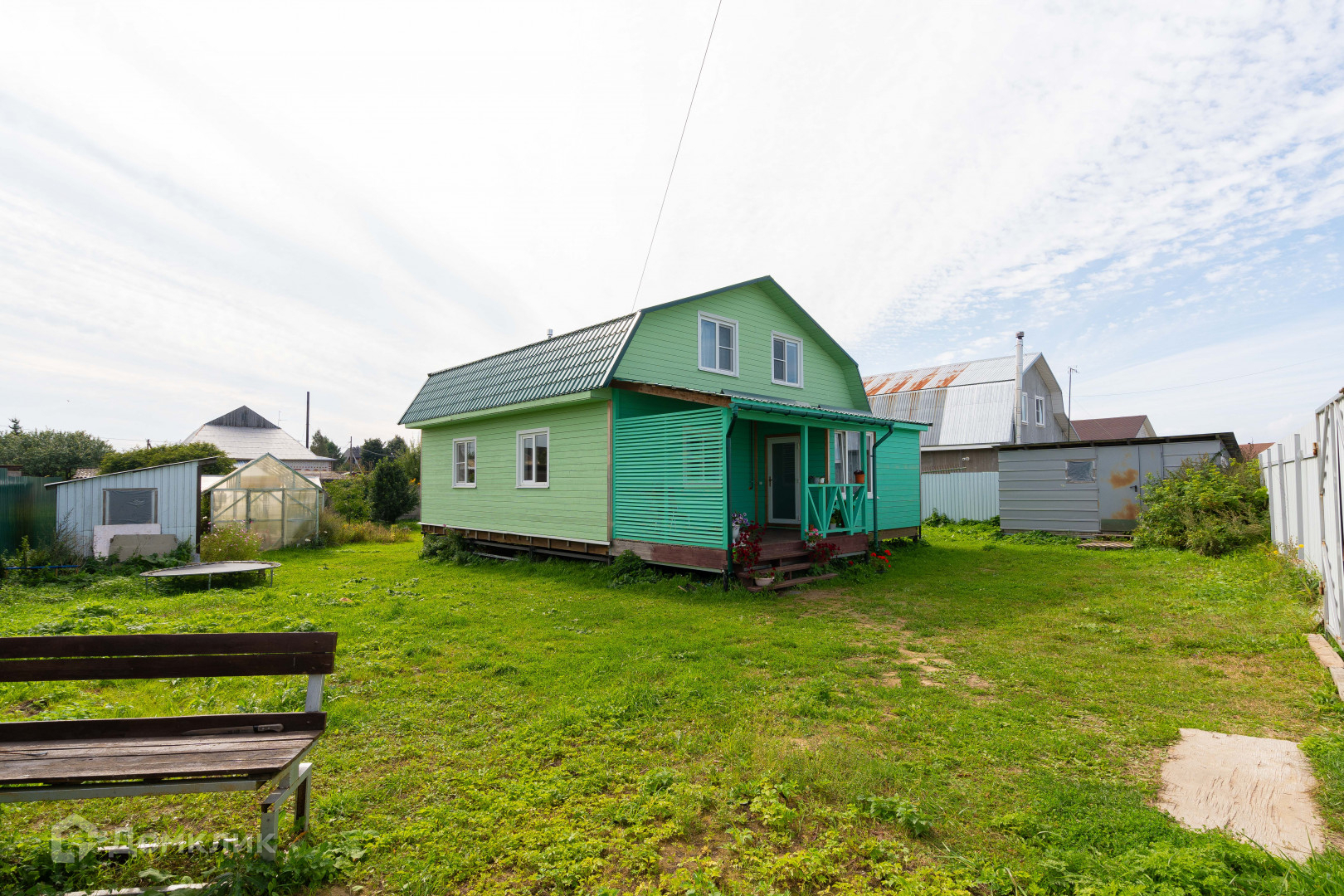 Дом построен в 2021 г. для круглогодичного проживания. Каркасно-щитовой, утеплен каменной ватой. Утепление 200 мм. Фундамент винтовые сваи, крыша металлочерепица.