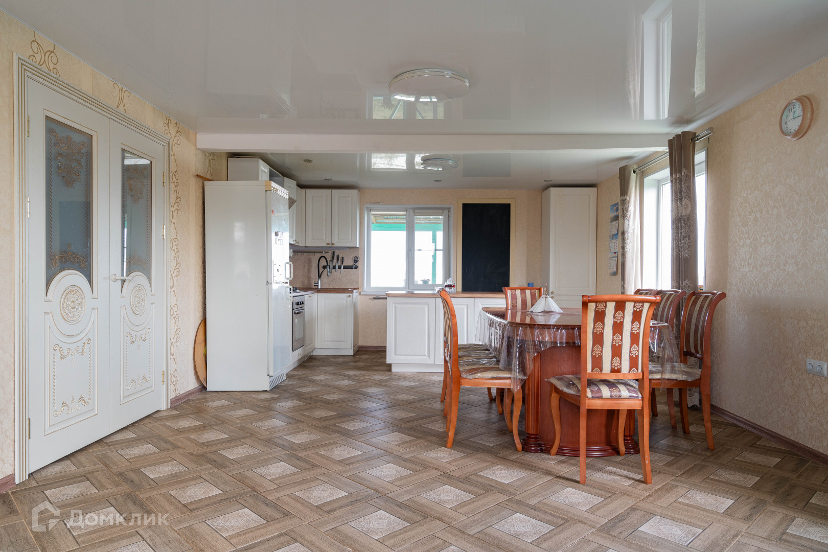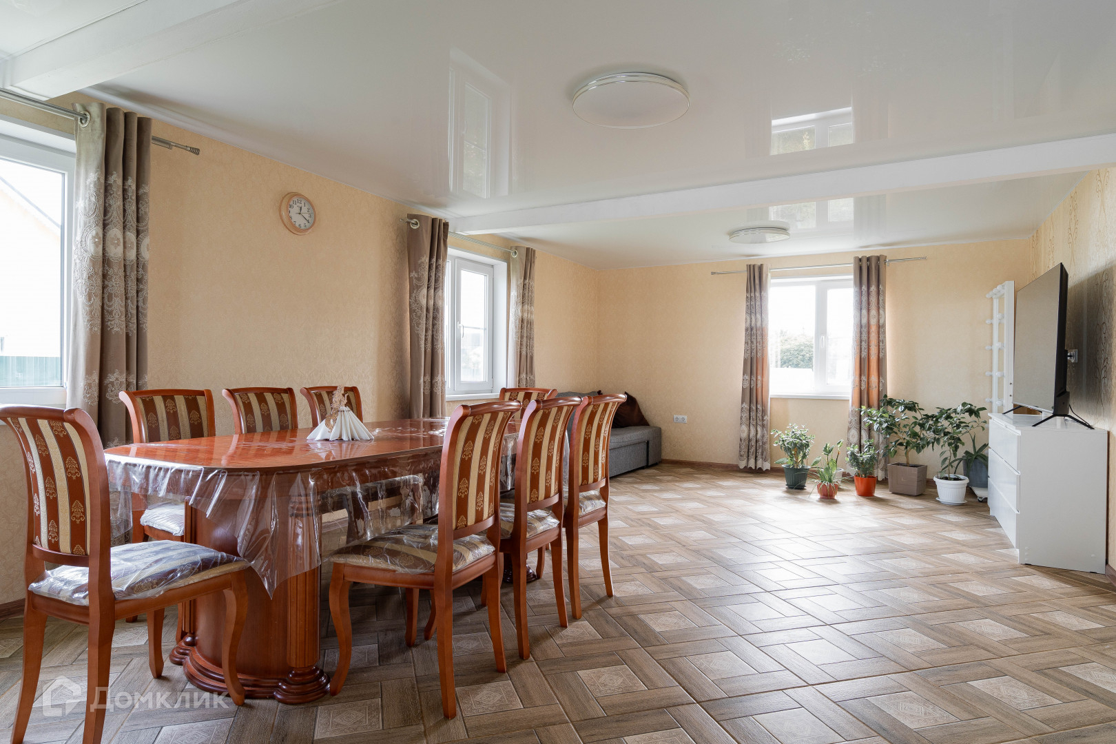 В доме удачная планировка для большой семьи: 5 спален, большая кухня - гостиная 36,46 м2, два санузла.