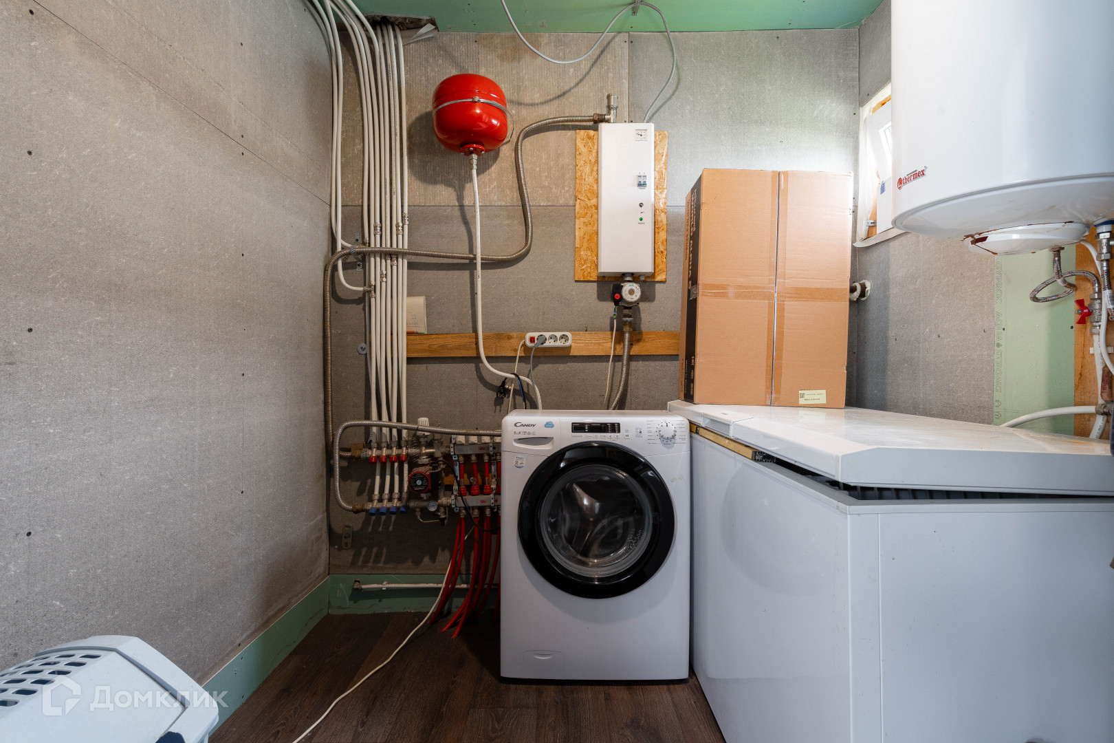 Установлен электрический котел, также можно установить газовый котел. Газ заведен в дом. Центральный водопровод. Электричество 15 Квт.