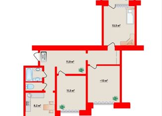 Трехкомнатная квартира на продажу, 80.1 м2, посёлок Романовка, 9