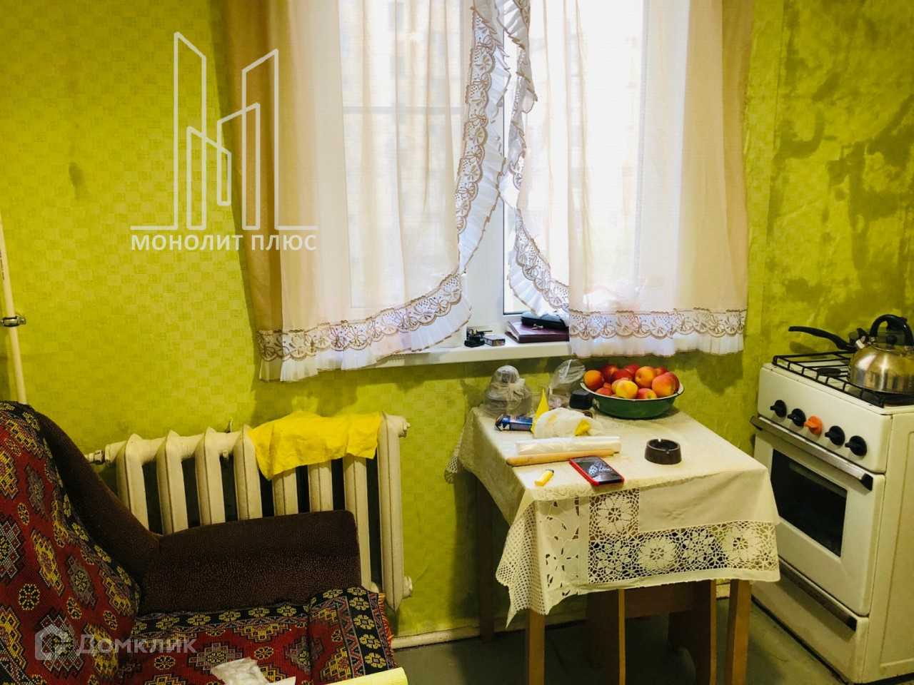 Просторная прихожая с кладовой. В комнате выход на застекленный и утепленный балкон. На всех окнах и балконе стеклопакеты.