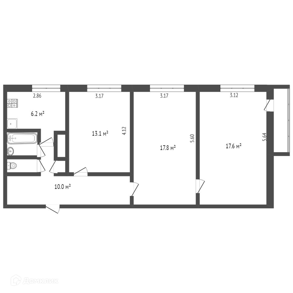 Общая площадь 68 м2